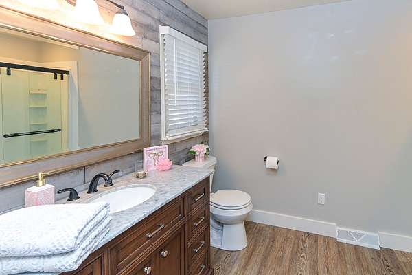 Est $2,251/moOwner's paradise! Huge 4 bedroom 2.5 bath home sitting atop a hill on gorgeous 2.4 acres! Loads of wildlife and gorgeous views also. Wood floors in main area. Updated kitchen and baths, huge family room plus a large bonus room off the kitchen with a private entrance could be a playroom, formal dining, den, office, game room or anything you want! Basement garage, gas fireplace, patio grilling area adjacent to the large deck. Outdoor barn/storage area. The property has many fruit trees and a garden area with raised beds.
