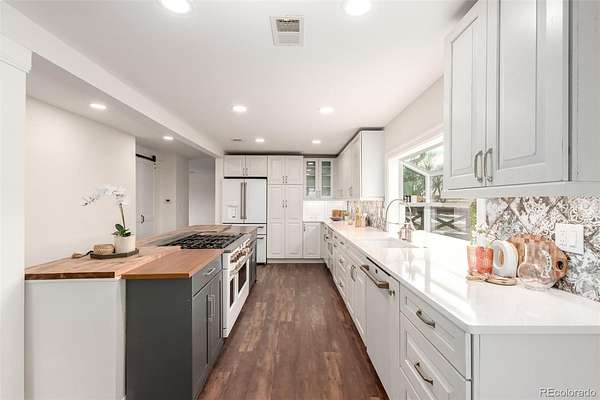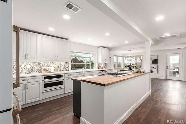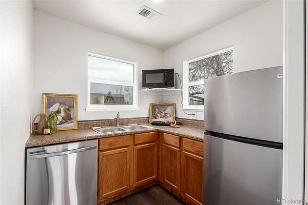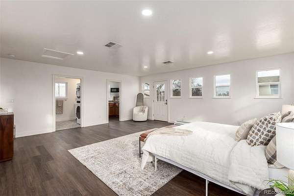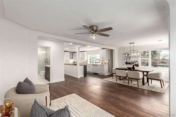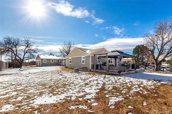 Single level home with ADU on a sprawling 1.7 acre lot with sweeping Colorado mountain views and over $200,000 in recent remodeling. Perfect for buyers seeking an in law floorplan, ADU style living, multi generational housing, or a handicap accessible home. The main residence lives like a luxury 2 bed 1 bath with bright open spaces, wood style floors, and a flexible bonus room with private access. The stunning custom kitchen has over $100,000 invested, featuring high end granite, luxury CAFE series appliances, abundant cabinetry, designer backsplash, and a prep island built for entertaining. The converted garage creates a versatile suite with a large walk in closet, ideal as a buffer between the main home and ADU, guest quarters, or it can be converted back to a 2 car garage to fully separate the living spaces. The attached addition functions as a private apartment with its own entry, kitchenette, laundry, oversized bedroom, and a new accessible bathroom. Huge backyard with deck, gazebo, shed, and room for an outbuilding.