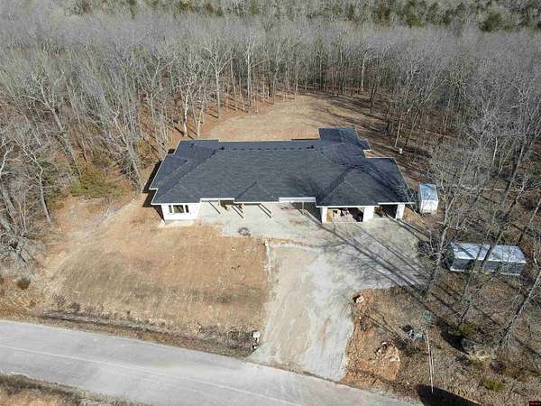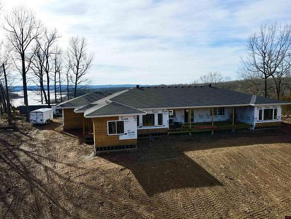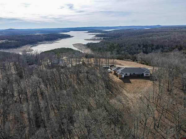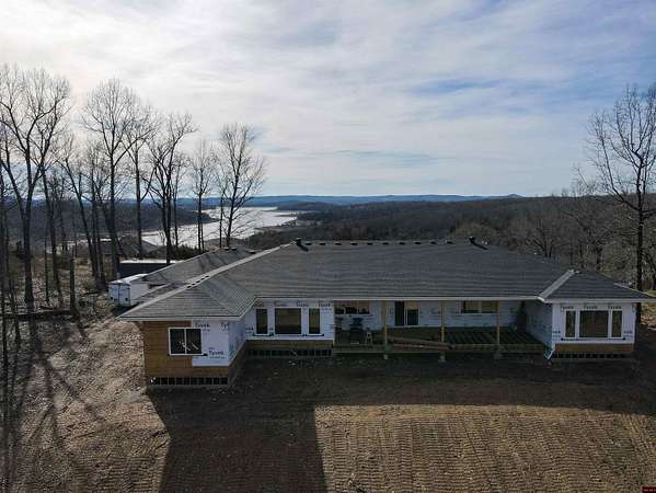 Brand new home with a beautiful YEAR ROUND view of Bull Shoals Lake! This 3 bedroom, 2.5 bath home offers approx. 3,400 sq ft m/l on 3 acres m/l and was designed with space, light, and beauty in mind! The open floor plan features 10 ft ceilings, a vaulted living room with a whitewash stone fireplace, and floor-to-ceiling windows that capture the lake view and fill the home with natural light. The kitchen is the heart of the home with a massive 14 ft quartz island, stainless appliances, and more than enough room for gathering. Split bedroom plan with a spacious master suite, large walk-in closet, and a huge 7 x 5 walk-in shower. This home also includes an office overlooking the lake plus a family/game room. Oversized 3-car XL garage with extra wing bay for boat parking. Covered deck with gas hookup and large covered porch perfect for relaxing or entertaining. Paved road access and less than 2 miles to the lake. Estimated completion early June!