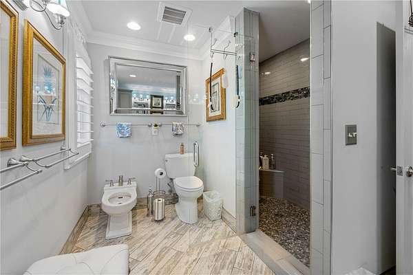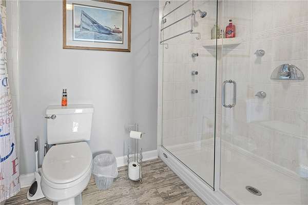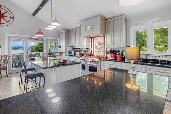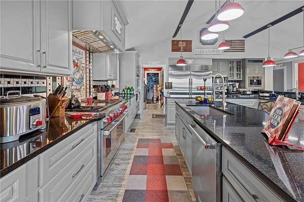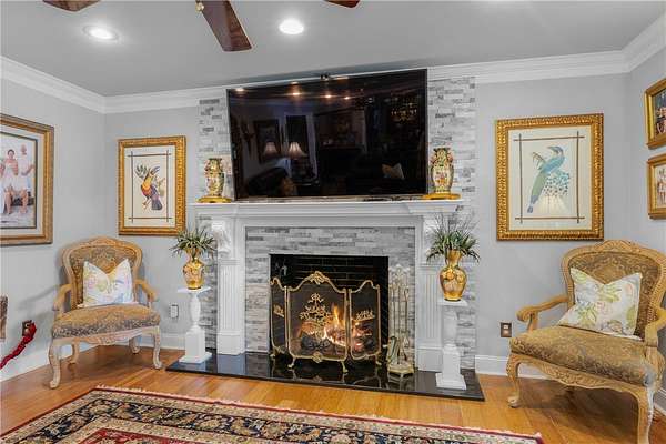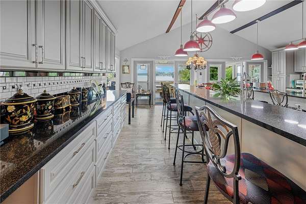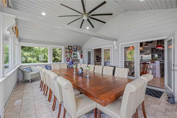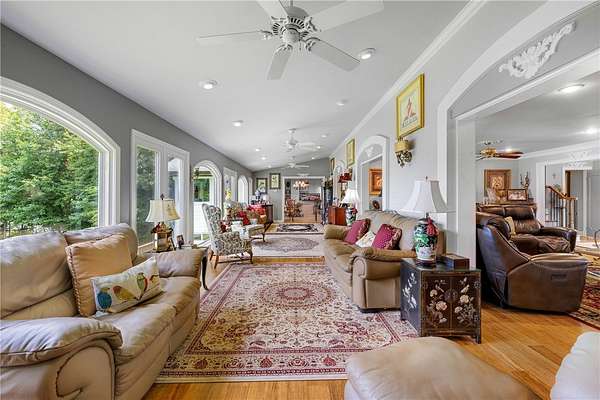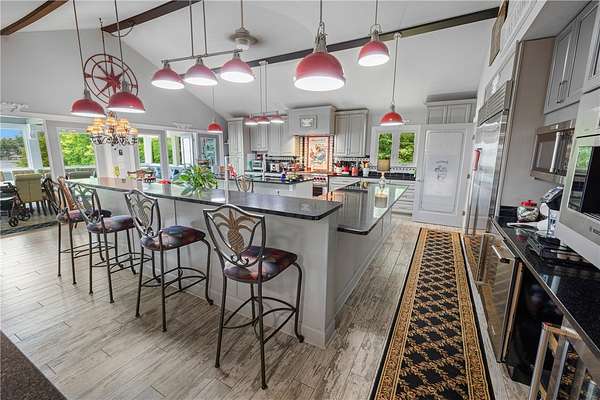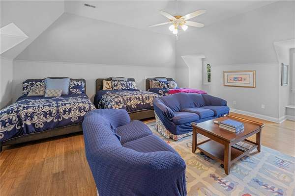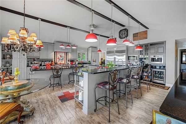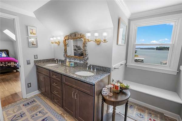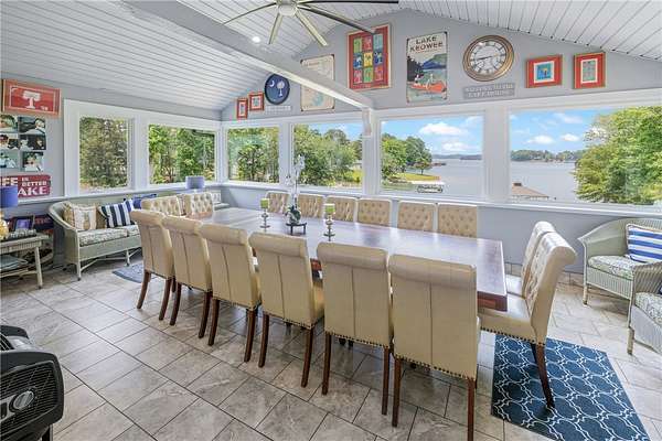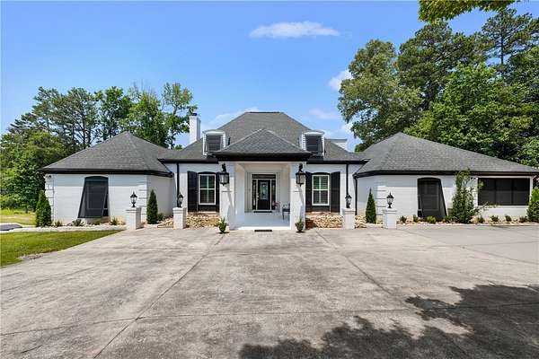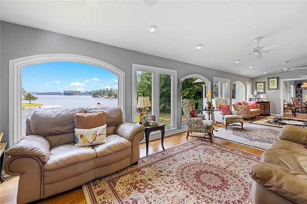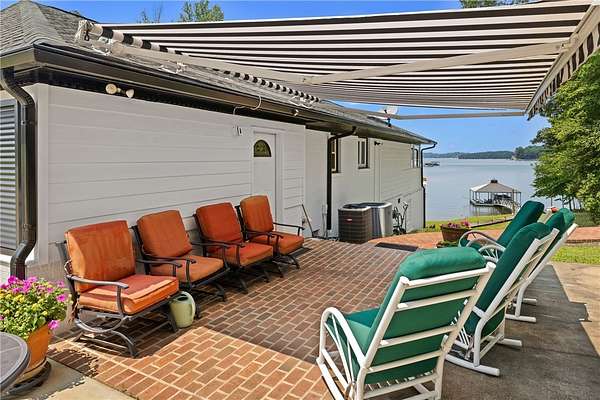 A rare and refined offering on Lake Keowee-this UNRESTRICTED 4BR, 4.5BA waterfront estate sits on an expansive 1.80-acre lot, just minutes from town yet wrapped in rural, lakeside privacy. Boasting 4,986 sq. feet of finished space, this stately white brick home has been thoughtfully updated to preserve traditional character while introducing modern conveniences throughout. The property welcomes you with a concrete upper driveway leading to the elegant front entry, with expansive parking for guests and entertaining. A separate lower-level concrete drive accesses a 2-car attached basement garage and additional unfinished space totaling 1,094 sq. feet - perfect for future expansion or storage. Inside, hardwood flooring flows through the main level, where nearly every lakeside room offers long-range water and mountain views. The foyer introduces a classic layout with a formal living room centered around a stone overlay gas fireplace, a formal dining room, and a lake-facing den/sitting area. A guest powder room and fourth bedroom (currently used as a study) with custom built-ins offer both comfort and functionality. The expansive primary suite anchors the left wing of the home and features a large bedroom, private laundry, full walk-in closet, and a luxurious ensuite bath with walk-in shower, double vanity, bidet, and porcelain tile flooring. On the opposite wing, a spacious guest suite with ensuite bath offers privacy and comfort for visitors. Nearby, the chef's kitchen is a true showpiece-designed for entertaining at any scale. Outfitted with custom cabinetry, dual center islands, bar seating, and top-of-the-line appliances, including a Sub-Zero fridge/freezer, professional-grade gas range with Wolf dual ovens, Wolf induction cooktop, double Wolf wall ovens, two farmhouse sinks, two dishwashers, wine cooler, ice maker, built-in Bosch coffee machine, and microwave. A large walk-in pantry doubles as a second laundry with utility sink and offers access to a patio area perfect for grilling and outdoor gatherings. Adjacent to the kitchen, a vaulted sunroom with rustic beams and nautical design hosts dining for 16+ with stunning lake views that feel like dining on the dock bringing the lake right to your table. Upstairs, an expansive loft leads to a versatile flex suite with hardwood floors, and ensuite bath-perfect for additional sleeping, media room, gym, or future expansion. The full ensuite bath features a tub/shower combo, walk-in shower, double vanity, and window seat overlooking the water. This section of the home provides endless flexibility for your needs, and could be divided to construct a 5th bedroom enhancing the value of the space. The outdoor living experience is just as impressive: a brick path leads to a lakeside boardwalk with landscape lighting and outdoor shower, guiding you to a private double-slip covered dock with power, water, and boat lifts. An exterior-access full bath adds convenience for long lake days, while the gently sloping grassy yard offers room for a future beach area along the shoreline or continued recreation. Rip-rap shoreline protection ensures long-term durability. Ample parking, versatile living space, unrestricted estate property, and unmatched waterfront access make this a rare find on Lake Keowee. A timeless retreat with enduring elegance and all the potential to make it your own.