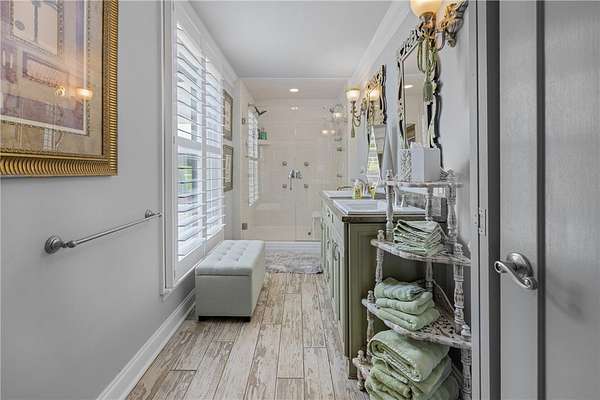 - Bath In Primary Bedroom, Cathedral Ceilings, Dual Sinks, Fireplace, High Ceilings, Main Level Primary, Shower Only, Walk In Closets, Walk In Shower