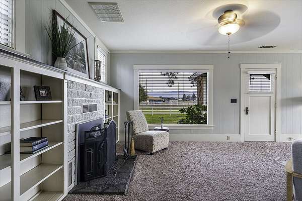 - Built-In Features, Ceiling Fan(s), Fiberglass Stall Shower, Linen Closet, Primary Downstairs, Shower/Tub Combo, Walk-In Closet(s)