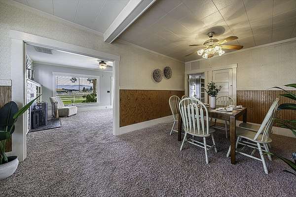 Wonderful Medford mini ranch just 3 miles east of Jacksonville. Great for ranching or farming with 10.76 EFU zoned level acres. 8-9 acres have irrigation. Lovely sunny land , perfect for crops, gardens, hay & horses. Sweet 1910 built, 2 -bedroom home with additional attic living for 3rd bedroom. Covered front porch leads to large living room with large picture windows, wood-burning FP & built in bookcases. Separate dining room, nice kitchen & cheery breakfast nook. Main level primary bedroom with walk-in closet, full bathroom, 2nd bedroom, large laundry room & Pantry/storage room. Main level is 1580 square feet. Upper finished attic room is spacious at 540 SF & has full bathroom. Rear covered porch leads to grounds featuring large newer 1200 SF workshop, 1550 SF barn with 7 stalls, multiple paddocks & tack rooms, & large concrete parking area. 3 separate wells, front & rear sprinklers. RV sewer hookup. Seasonal pond. Rural feel right in town, minutes to all conveniences. City sewer!