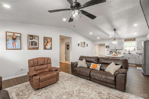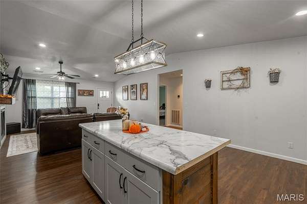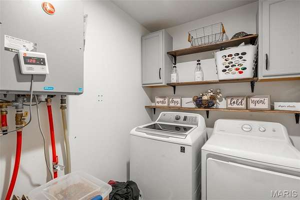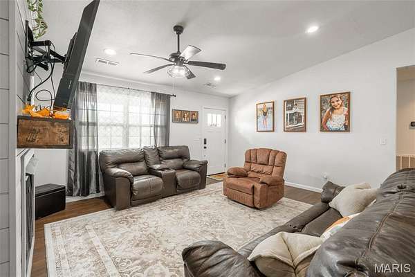Inside, the open floorplan seamlessly connects the kitchen, dining room, and living area, fostering a spacious and inviting atmosphere. Enjoy year-round comfort with central heating and air conditioning, complemented by the efficiency of a tankless water heater.