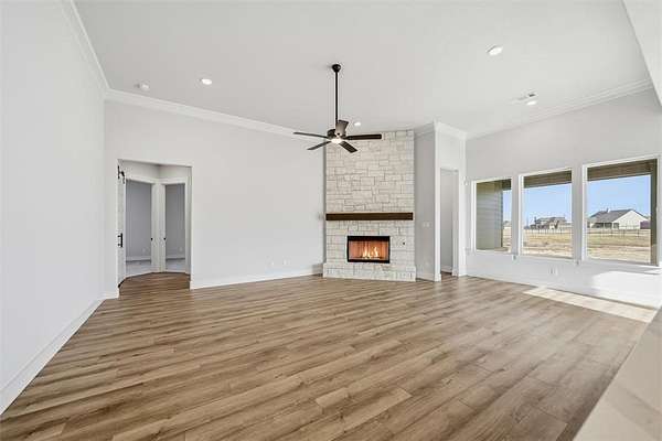 Estimated October 2025 completion! Ask us about our Trade In Trade Up program, we can buy your home! Step into the Bluebonnet by Riverside Homebuilders and embrace a lifestyle of comfort and functionality. With 4 bedrooms and 3 bathrooms sprawled over 2,686 square feet, this single-story haven offers ample space for every member of the family. As you enter through the inviting porch, the airy foyer sets the tone for the home's open layout. To the left, a flex room awaits, beckoning to be transformed into your ideal space--whether you envision a home office, gym or hobby room. Continue through the foyer to discover the heart of the home--a luminous dining room bathed in natural light. Beyond lies the main living area, a seamless fusion of the expansive kitchen, cozy family room featuring a fireplace and a charming nook adorned with picturesque windows. On the right wing of the home, privacy awaits with three traditional bedrooms and a breathtaking owner's suite. The owner's retreat boasts a spacious walk-in closet and a spa-like bathroom, offering a sanctuary for relaxation. Convenience is paramount with the laundry situated just off the bedrooms, accompanied by a mud bench near the garage entrance. To embrace the beautiful DFW weather without having to leave your home, step outside to the generous covered patio--where endless possibilities for outdoor enjoyment await. With its thoughtful design and inviting atmosphere, the Bluebonnet embodies the epitome of charming Texas living for all families alike.