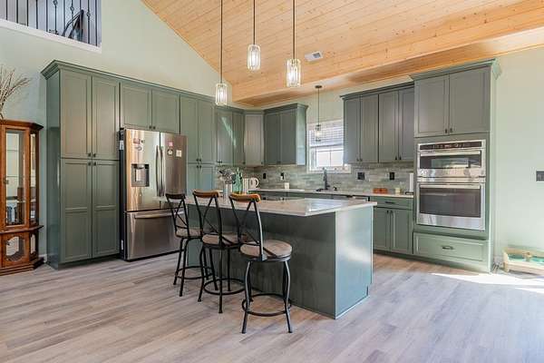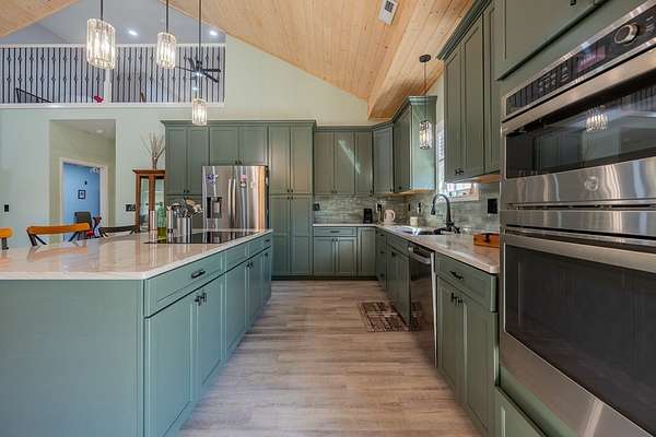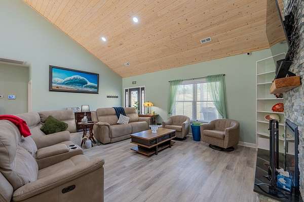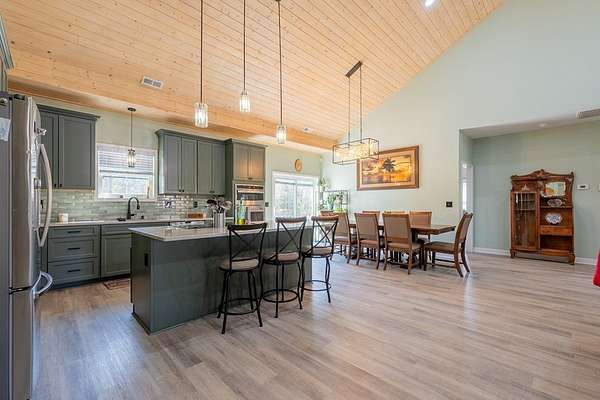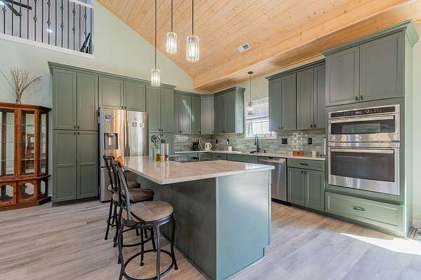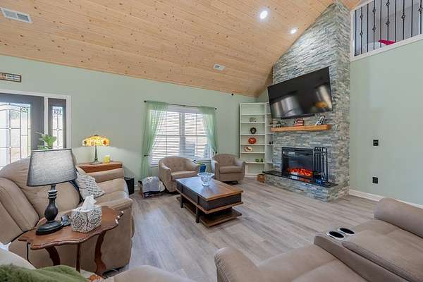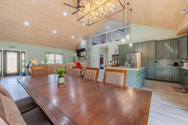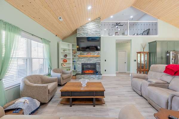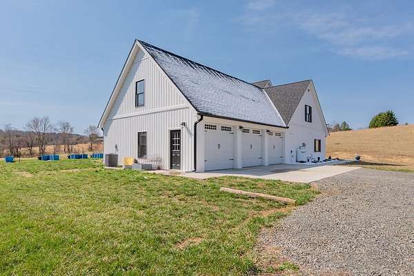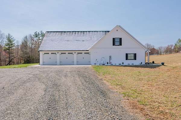 Discover this stunning custom home on 8.48 acres in the scenic Blue Ridge Mountains, just minutes from Galax. Built in 2021, this spacious 4-bedroom, 2 full-bath and 1 half-bath home offers ample space with an open floor plan, soaring wood ceilings, and a beautiful stone fireplace. The gourmet kitchen features high-end appliances, abundant cabinetry, and plenty of space for entertaining. The oversized primary suite includes a luxurious bath, massive walk-in closet, and convenient access to the laundry room. Upstairs, a versatile loft and studio-style bedroom create the perfect setup for guests, multi-generational living, or a home office. Enjoy the freedom of unrestricted rolling pastureland. This property is ideal for a mini farm, horse property, garden enthusiast, or private recreational estate. An extra-deep 3-car garage provides excellent storage and workspace. Enjoy peaceful rural living, mountain views, and modern luxury with acreage just minutes from shopping and attractions!