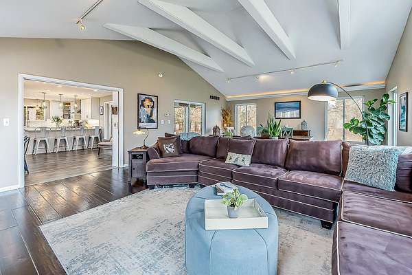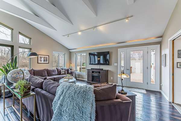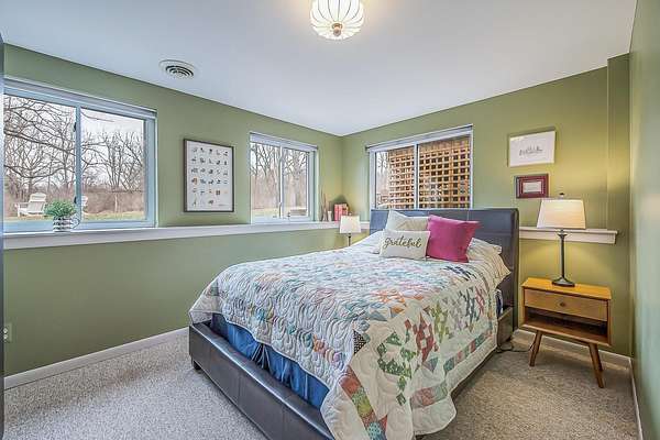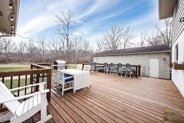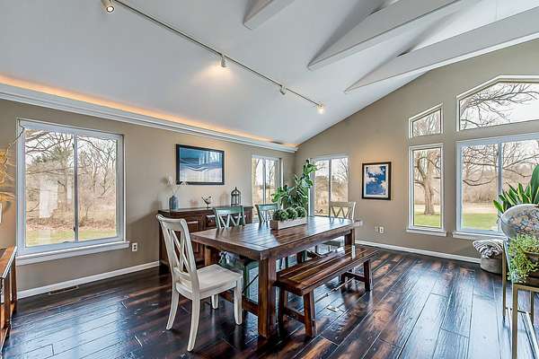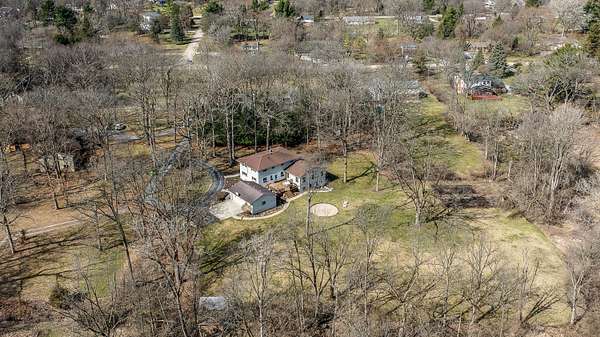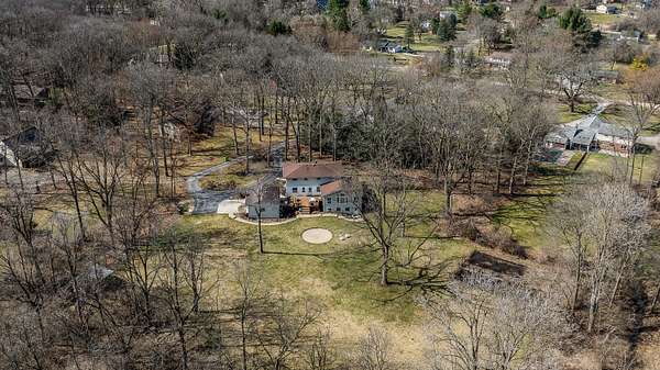 Escape to your own private retreat just minutes from downtown Ann Arbor. Nestled on two wooded acres in Scio Township, this 5-bedroom, 3.5-bath home with a private mother-in-law suite in the lower level offers the perfect blend of tranquility and modern comfort, complete with the benefit of lower township taxes. As you enter this property it will feel like you are escaping up north as you drive down this private road to this enclosed property; A perfect place for kids and pets to run around in the private cul de sac. Step inside to a breathtaking great room featuring soaring vaulted ceilings, rich engineered wood floors, and a wall of windows that floods the space with natural light while framing spectacular backyard views. The heart of the home is the beautifully remodeled kitchen, designed with both style and functionality in mind. Updated in 2018, it features sleek quartz countertops, soft-close white cabinetry, stainless steel appliances, and luxury vinyl tile flooring. Thoughtful details like custom cabinet interiors with pull-out drawers, deep stacking drawers, and a pull-out waste bin make organization effortless, while a cozy built-in breakfast nook and updated lighting create a warm and inviting space perfect for gathering. Take your morning coffee out to the screened-in, three-season porch to enjoy the surrounding wildlife, including deer, turkey, and the occasional barn owl. The outdoor space is a true masterpiece. Wander past perennial gardens, a peaceful Koi pond, and new paver walkways to a brand-new bi-level deck overlooking an expansive yard. The property backs up to private land with gently rolling hills and a winding creek, complete with a fantastic firepit and a fenced vegetable garden. The main level also provides a living room/den, a flex space that is perfect as a home office, as well as a spacious mudroom/laundry room and half bath. Upstairs, you will find a spacious primary bedroom with attached ensuite bath alongside three additional bedrooms and a thoughtfully updated shared bathroom. The surprises continue in the finished walkout basement. With an additional 1,000 square feet of living space, you get a sprawling recreation room, a kitchenette, and a highly desirable mother-in-law suite. This unique suite features a private exterior entrance, a sitting room, a study, one bedroom, and a fully remodeled bathroom with a ceramic tile floor and shower surround. It is the perfect setup for extended family or potential rental. A 2.5-car detached garage provides plenty of space for vehicles and storage. Enjoy a peaceful, secluded setting surrounded by nature, all while being just minutes from highways and downtown Dexter and Ann Arbor.