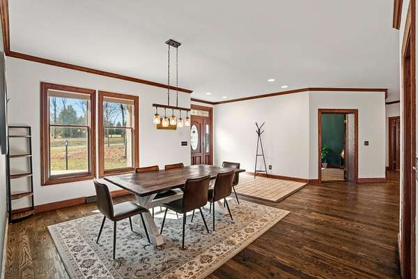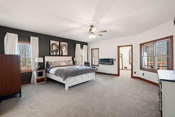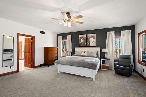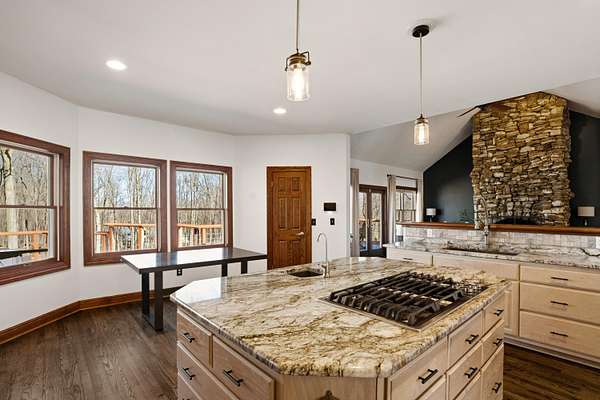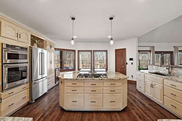 Tucked away on 1.64 wooded acres in sought-after Richfield, this stunning 6,087 sq ft estate offers exceptional space and versatility. A vaulted great room with walls of windows fills the home with natural light, while a custom wood-burning fireplace creates a warm retreat. The 2019 kitchen is ideal for gathering and entertaining, and the remodeled walkout lower level features a kitchenette, family room, workout space, and flexible guest suite options. The oversized primary suite boasts THREE walk-in closets. Major updates include roof (2022), furnace & A/C, refinished hardwood floors, paint, carpet, and lighting (2025). Expansive deck, Generac generator, and oversized 3.5-car garage complete the offering.