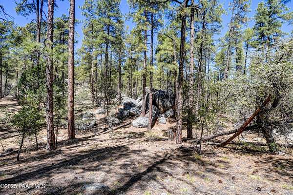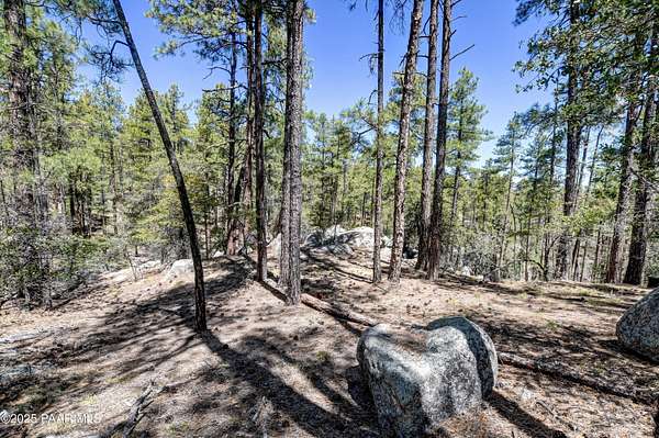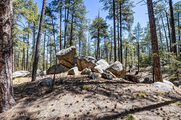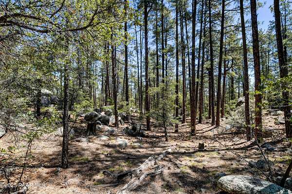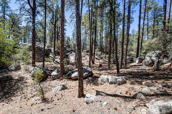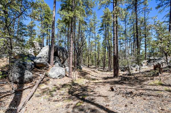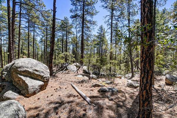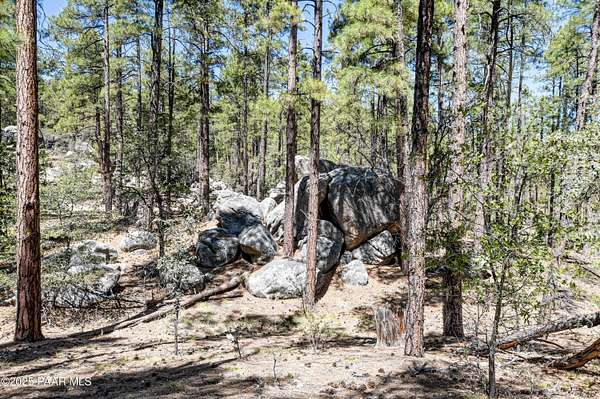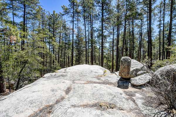 Views through the majestic Ponderosa Pines & huge boulder outcroppings. Pers sellers, the 2.54 dividable acres has two water shares supplied by HPDWID from the City of Prescott; water, electricity & cable are in the street. Magnificent boulder outcroppings, some you could even work into with your future home design to walk out onto like a patio! Where can you find a pine lot like this with multiple choice building spots? And a seasonal stream on one side! Hurry, this won't last. Aerial Plot map is approximate. Deed restrictions include underground utilities and a min.1500 sqft built homes only. When seeing the lot ignore the no trespassing signs . See Documents tab.