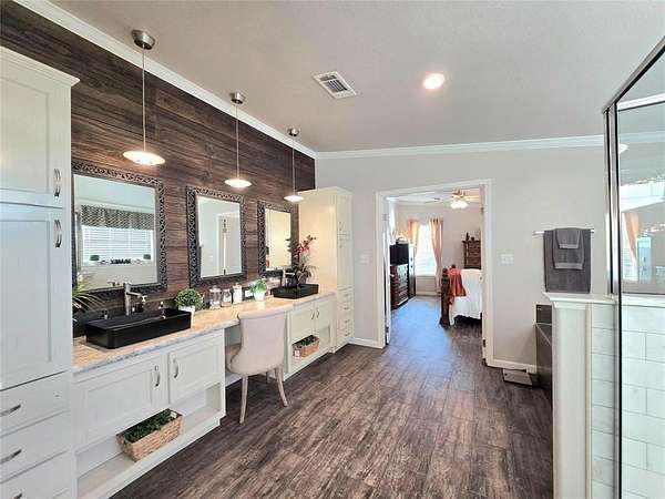 - Decorative Lighting, Double Vanity, Eat-In Kitchen, Granite Counters, Kitchen Island, Open Floorplan, Pantry, Walk-In Closet(s)