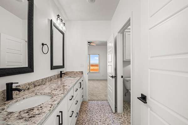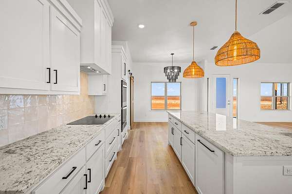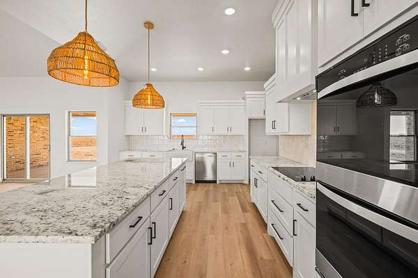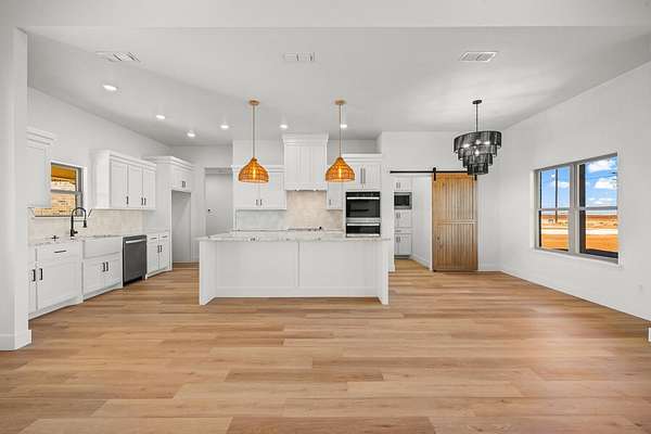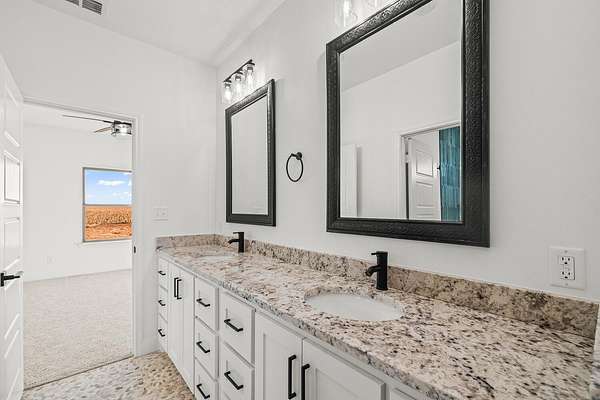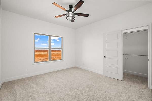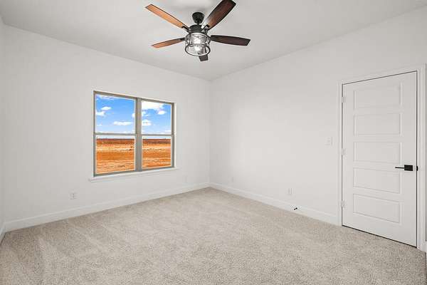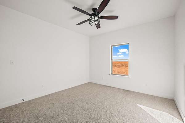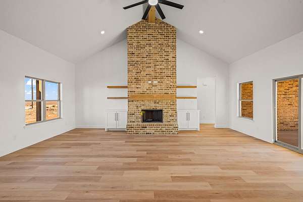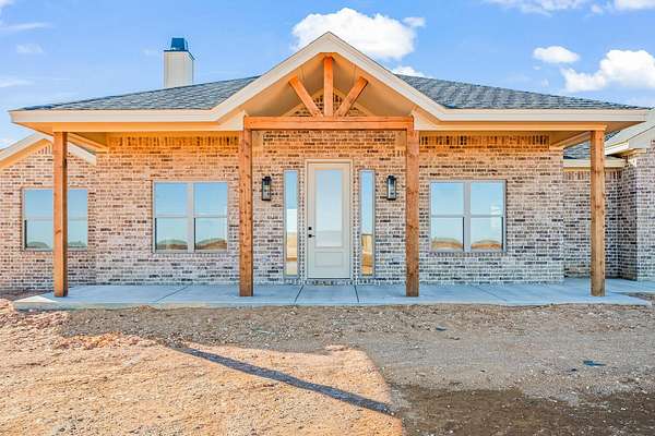 Stunning new construction on 5 acres by MJ Wallis Homes, located just minutes from FM-41, Ropesville, and a short drive to Lubbock. This 2,329 sq ft home offers the perfect blend of quality construction, comfort, and wide-open West Texas living. Featuring 3 bedrooms and 2.5 bathrooms, the home showcases thoughtful design and craftsmanship throughout. The exterior offers classic brick construction, a welcoming front porch with natural wood accents, and expansive views of surrounding farmland. Inside, you'll find an open-concept layout with abundant natural light. The spacious living area flows seamlessly into the kitchen, complete with custom cabinetry, a large island, and ample space for both everyday living and entertaining. The isolated primary suite provides a private retreat with a well-appointed bath and generous walk-in closet. Two additional bedrooms offer flexibility for guests, office space, or family needs. The 5-acre tract provides room to expand and enjoy-ideal for horses, a shop or barn, or simply taking in the quiet surroundings. Convenient access to paved roads and nearby amenities offers the benefit of country living without sacrificing accessibility.