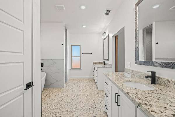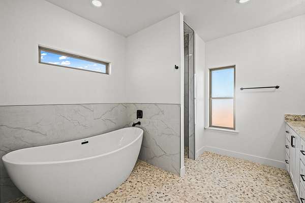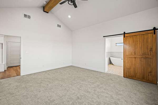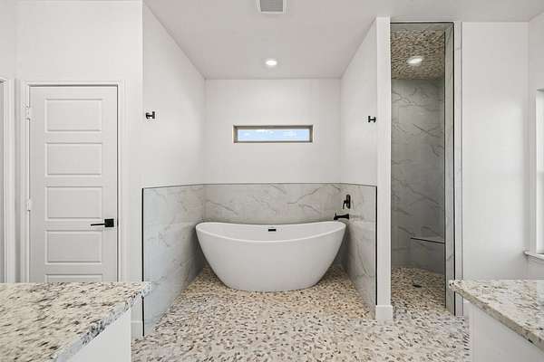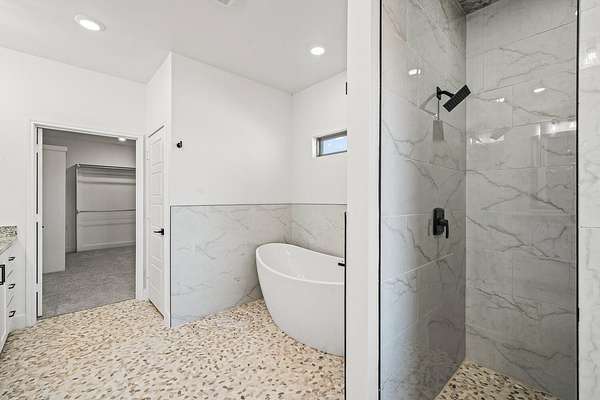 - Ceiling Fan(s), High Ceilings, Kitchen Island, Open Floorplan, Pantry, Quartz Counters, Recessed Lighting, Soaking Tub, Walk-In Closet(s)