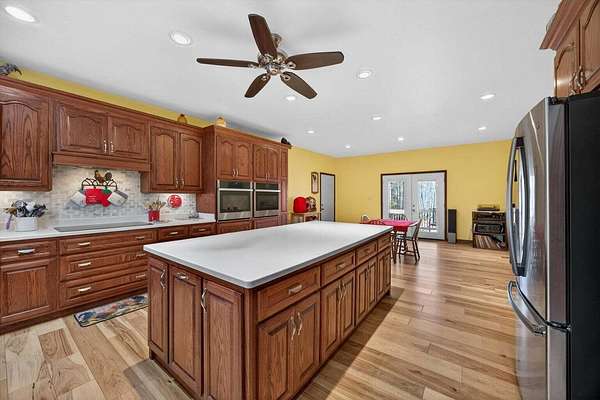 Nestled on 19.19 private acres, this beautifully maintained single-level home offers the perfect blend of comfort, craftsmanship, and country living. Inside, rich hickory flooring flows throughout the main living spaces, complemented by a cozy wood-burning fireplace that creates a warm and inviting atmosphere. The home is equipped with modern infrastructure, including underground fiber-optic utilities and a 200-amp electrical panel, ensuring reliability and high-speed connectivity. Outdoors, the land is a true highlight, featuring established blackberry bushes, grapevines, and peach trees ideal for those who appreciate gardening, homesteading, or simply enjoying nature's bounty. With ample acreage for privacy, recreation, or expansion, this property delivers peaceful living without sacrificing modern convenience.