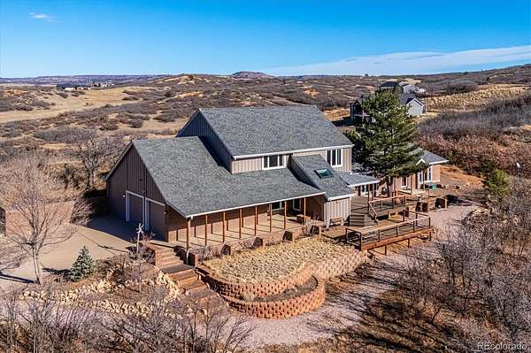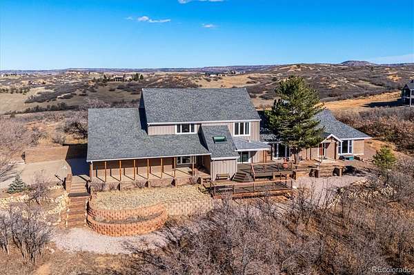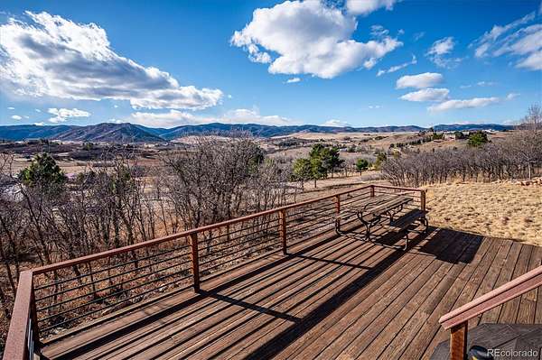 BEAUTIFUL, REMODELED HOME IN CUL-DE-SAC LOCATION WITH INCREDIBLE MOUNTAIN VIEWS ON 5.07 ACRES IN INDIAN CREEK RANCH! MAIN-FLOOR MASTER SUITE ADDITION (2014) WITH MOUNTAIN VIEWS, WALK-IN CLOSET WITH BUILT-IN DRAWERS AND SHELVING, CEILING FAN, CANNED LIGHTS, AND OPTIONAL SEPARATE ENTRANCE! ATTACHED FIVE-PIECE MASTER BATHROOM WITH EURO-STYLE SHOWER WITH SEAT, DOUBLE SINKS WITH GRANITE COUNTERTOP, DEEP SOAKING TUB, AND HEATED FLOORS WITH 18" TILES! REMODELED KITCHEN WITH GRANITE COUNTERTOPS AND DEEP, UNDERMOUNT SINK, DOUBLE OVEN, 5-BURNER ELECTRIC COOKTOP, OAK CABINETS, CROWN MOLDING, CANNED LIGHTS, AND HARDWOOD FLOORS! OPEN DINING ROOM! SPACIOUS LIVING ROOM WITH WOOD-BURNING STOVE, CEILING FANS, SOLATUBES, AND MOUNTAIN VIEWS! FRONT ENTRY FOYER WITH HARDWOOD FLOORS, CEILING FAN, AND SKYLIGHT! MAIN-FLOOR STUDY WITH FRENCH DOORS, BUILT-IN SHELVES, CROWN MOLDING, AND MOUNTAIN VIEWS! POTENTIAL MULTI-GENERATION HOME WITH SECOND MASTER SUITE UPSTAIRS WITH UPDATED BATHROOM, WALK-IN CLOSET, AND MOUNTAIN VIEWS! UPDATED FULL BATHROOM FOR SECONDARY BEDROOMS! LARGE LAUNDRY/MUD ROOM WITH UTILITY SINK AS WELL AS DEDICATED STORAGE ROOM! NEW ROOF (2026)! NEW SEPTIC TANK (2026)! NEW EXTERIOR PAINT (2025)! NEW DECK (2023)! DOUBLE-PANE WINDOWS! SIX-PANEL DOORS! CROWN MOLDING! CENTRAL AC! WASHER/DRYER INCLUDED! RADON MITIGATION SYSTEM! HOME COMES WITH A 14-MONTH BLUE RIBBON HOME WARRANTY! GORGEOUS FIVE ACRES WITH POTENTIAL FOR UP TO FOUR HORSES! AMAZING VIEW OF SURROUNDING MOUNTAINS, INCLUDING WILDCAT MOUNTAIN, FROM COVERED, 18' x 13' DECK AND LOWER, 23' x 14' DECK! ATTACHED, OVER-SIZED TWO-CAR GARAGE WITH 9-FOOT DOORS AND DETACHED TWO-CAR GARAGE/SHOP WITH ELECTRICAL UPGRADES! DEDICATED RV/BOAT/TRAILER PARKING! LOCATED NEAR DOUGLAS COUNTY OPEN SPACE AND PIKE NATIONAL FOREST! EASY COMMUTE TO LITTLETON, DTC, OR CASTLE ROCK! HOA IS $200 A YEAR AND INCLUDES CLUBHOUSE, PLAYGROUND, COMMUNITY HORSE ARENA, AND MILES OF BRIDLE PATHS!
