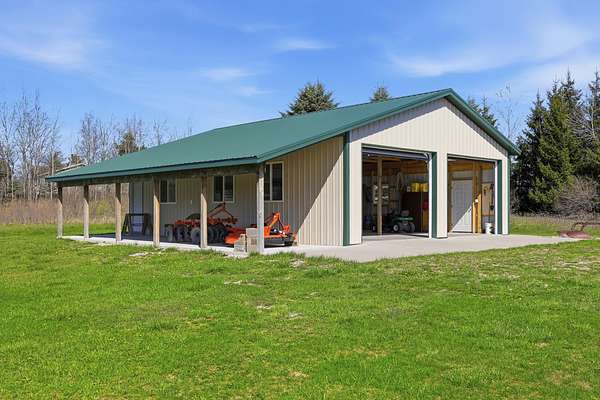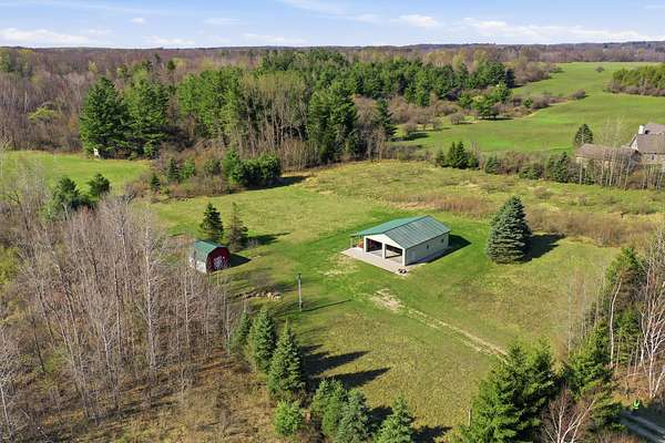 Escape to your own private hunting retreat! This property offers prime hunting ground with a mix of natural terrain that attracts wildlife. A meandering creek runs through the land, creating a natural travel corridor for deer and game. The acreage features a perfect mix of woods and open clearings, ideal for food plots and hunting setups. A solid, well-built 30x40 pole barn with electric has a cement floor and provides excellent storage for equipment, toys, or workshop space, and features an attached 10x40 overhang with a concrete pad, perfect for additional covered storage or outdoor workspace. There's also a two-story shed finished as a hangout space with loft above. Additional features include a fenced garden area, apple trees, and existing deer blinds. This property is ideal for hunting, recreation, or quiet country living.