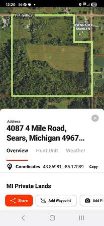 From Barryton, M66 north to 4 Mile west to property on south side of road.