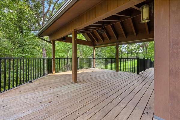 Nestled among 38 acres of Ozark beauty, this custom-built home offers a rare blend of privacy, craftsmanship, and natural elegance. Surrounded by 33 acres of towering oak trees accented by spring redbuds and dogwoods, plus 5 acres of meadow, the setting is truly breathtaking. The redwood exterior was re-stained and sealed in 2022, complementing the home's timeless appeal. Inside, the gourmet kitchen features Wolf double ovens, warming drawer, electric cooktop, Sub-Zero refrigerator/freezer, wine fridge & ice maker, and a Wolf microwave--perfect for the chef at heart. The 2010 remodel also included a finished basement with a Viking beverage fridge and a second wood-burning fireplace, while the main level showcases a stunning 30-ft limestone fireplace as the focal point of the living area. The spacious primary suite includes dual walk-in showers. Paved driveway, black iron deck railing, and a detached redwood barn with 2 garage doors, carport, man door, and upper-level storage complete this exceptional property.