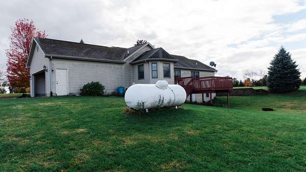 Welcome to this charming 3-bedroom, 2.5-bath home perfectly situated on 4.95 acres of peaceful countryside. Enjoy the best of both worlds with plenty of open space and privacy while being only a 15 minute drive away from Lansing. The home features a functional main-floor layout with convenient main-floor laundry, a comfortable living area, and a well-designed kitchen. The large, open unfinished basement offers endless possibilities-finish it off for additional living space, a recreation room, or a home gym. The walk-out basement adds natural light and easy access to the backyard. Outside, you'll find two large barns and a smaller outbuilding, perfect for storage, hobbies, or a workshop. The expansive property provides ample room for gardening, animals, or simply enjoying the outdoors. This property combines rural tranquility with modern convenience-a true must-see!