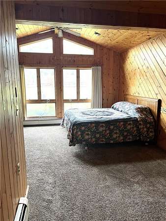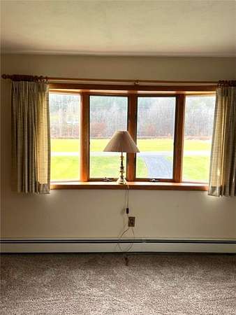 Est $1,883/mo4 Bedroom 2 bath Rambler on 8 acre lot. Panoramic mountain views on town maintained road. Open floor plan, vaulted ceilings, unique brick fireplace, window wall to mention a few of great spaces in this home. Spacious main bedroom with bathroom suite, walk in closet. Special attention paid to detail with tongue and groove details, interesting brick structure with fireplace, stone work on exterior. Sliders to deck, skylights, mature landscaping. Convenient location close to town but our far enough to enjoy what Upstate NY has to offer.