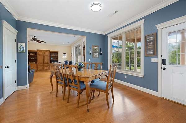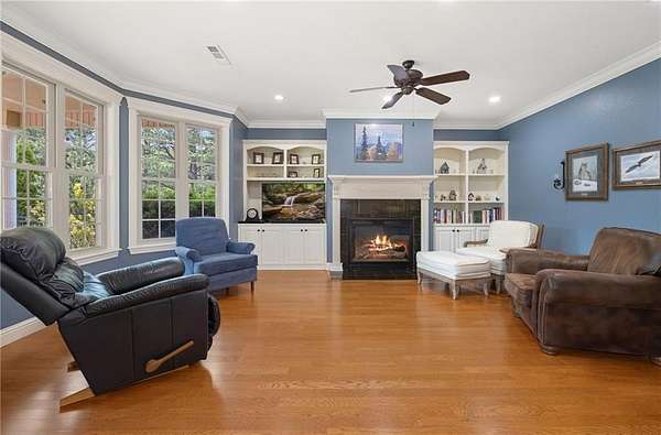 Ready to stop sharing your personal space with the house next door? Nestled on a sprawling 4.15-acre estate this home is 14 minutes from the new Walmart Home Office, Crystal Bridges and Downtown Bentonville, 16 minutes from the Walmart AMP and 5 minutes from downtown Rogers. Step inside this spacious home with multiple living areas to suit every need: a cozy retreat conveniently located off the kitchen which has newly painted cabinets, a formal den in the center of the home and an upstairs bonus room. Also on the main level is the formal dining room, breakfast nook looking out onto the pool, a private office and primary bedroom with dedicated hot water heater & HVAC, en-suite bath and cozy fireplace. Step outside and be captivated by the lush landscaping with irrigation, saltwater pool and Tuscan fig trees. There's more! An attached 4 car garage and a 40x50 steel-framed shop with 1/2 bath, foam insulation, central heat/air, convenient 12 x 16 tall shop door and a lean-to providing additional covered storage.
