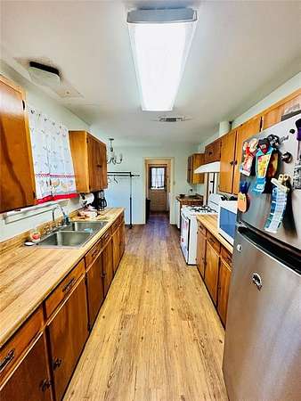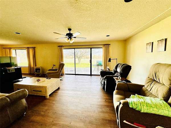 Great corner property with the house inside a chain link fence and then a net wire fence for the orchard and the pasture. Home is 3 bed 2 bath, site-built in 1983 with appliances and dining table that will convey. The home has new laminate wood floors installed throughout. The large living and dining area would make great gathering place for friends and family. Central heat & air and natural gas space heaters for heat, double-paned windows and a metal roof are just a few of the updated features. The primary bedroom has an ensuite bath with tile shower and double closets. The living room has 3 large sliding doors that look out onto the covered back porch which looks out over the pasture. You can sit back, relax and watch your livestock grazing from the back porch.