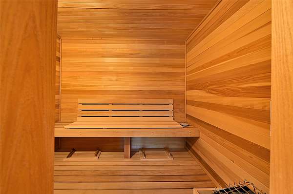 - Beamed Ceilings, Interior Steps, Sauna, Wet Bar