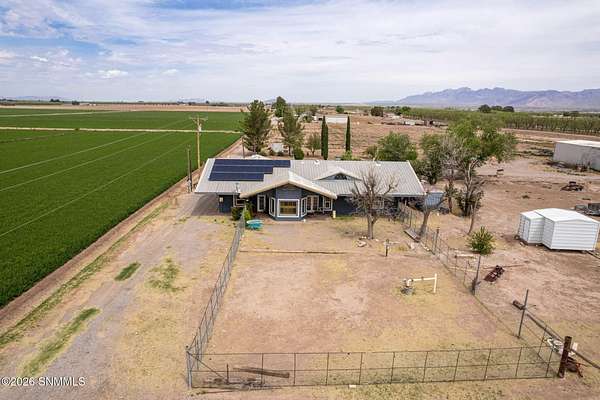 Est $3,050/moDiscover your dream retreat in La Mesa, New Mexico, on 8.35 acres of serene farmland. This property boasts 18 mature pecan trees and an agricultural well. The 2,215 sq. ft. Southwestern-style home offers 3 bedrooms, 2 baths, and solar power. Immerse yourself in the tranquil beauty of the area while enjoying spacious, sunlit living spaces and the charm of rural New Mexico living. Two wells, Ag and residential!