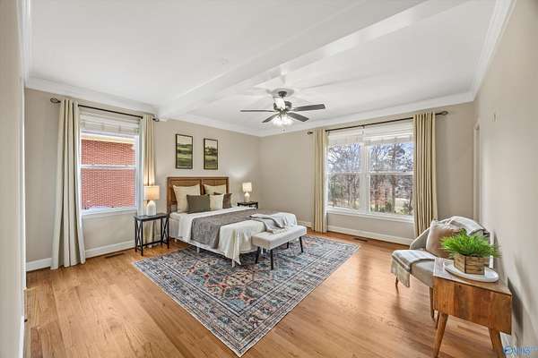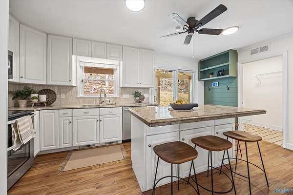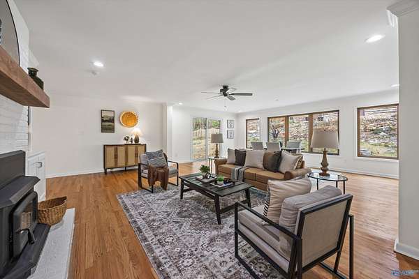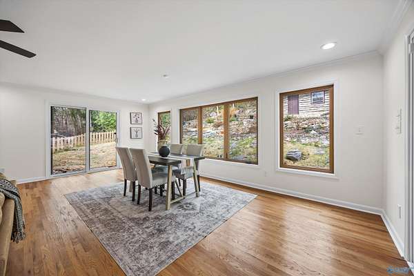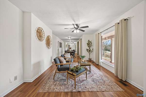 Beautiful rancher situated on almost 2 acres in the Heart of Jones Valley/ South Huntsville! This extremely unique home features 4 beds 3 baths, large family room, updated kitchen & baths, oversized detached garage with 2 finished bonus spaces, green house & a real log cabin with power! Tons of character & possibilities with this home plus its move in ready! All hardwoods no carpet, vinyl windows, 2 water heaters, whole house generator, fenced area for the pups, large attached carport/patio, existing gardening spots, circular drive, PRIVACY, the 2 detached bonus spaces can be a home gym, office, studio, storage... Lastly it's an amazing location near Whitesburg CA, the arsenal, and shopping!