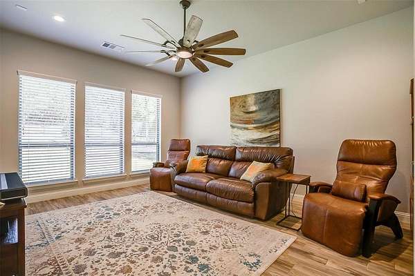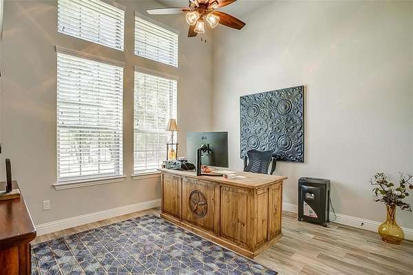 Get ready to see this fabulous Sorrells Custom Home built in 2020 on 2 acres. This was the 7th home built in the neighborhood and on a PRIME Lot. The acreage in the back is a private wooded area. The deer and occasional turkey roam the back of the property. 4 bedroom or 3 bedrooms with an office that is organized and clean throughout, Pride of ownership is very obvious! Knotty Alder woodwork, wood look ceramic tile, granite countertops, rust resistant farm sink, double oven, propane stove, fenced yard w three gates and a pass through for deer, in-ground basketball goal, concrete coating on sidewalk and porch and patio. It's all gorgeous! You have to see it and then you will LOVE it! Bonus room just off the garage that would make a man cave or craft room or just extra storage. Tight and energy efficient with foam insulation, two tankless water heaters, propane gas for stove and fireplaces, 2 AC units, New Bosch dishwasher. Buyer and Buyers agent to verify all information. NO SIGN IN YARD