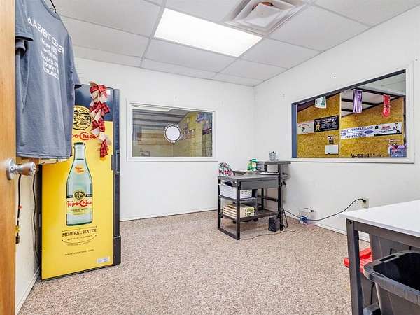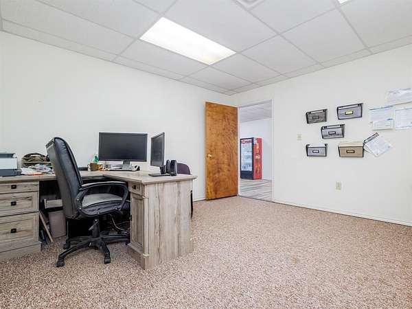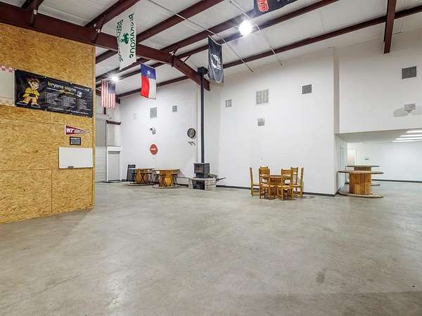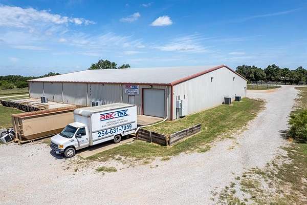 Versatile 12,000 sq ft (100x120) clear span metal facility on 3.8 acres, just off I-20 outside Eastland city limits. Formerly the AA Event Center, this property offers a flexible layout with 8 offices, 3 bathrooms, 2 meeting rooms, kitchen, waiting area, open common area, storage, and wood-burning stove. Features include loading dock, 2 roll-up doors, 40x25 covered awning, 4 entry points, 6 HVAC units (2 new in 2024), and fenced perimeter with gated entrance. Recent updates include new flooring, paint, windows, security system, sound system, entrance fencing, and resurfaced concrete floors. South side converted for axe throwing; recessed ceiling removed for a clean, open feel. Located in an Opportunity Zone, offering potential tax advantages for investors. Endless possibilities for events, business operations, storage, or light industrial use.