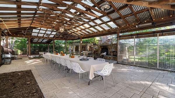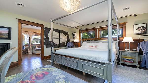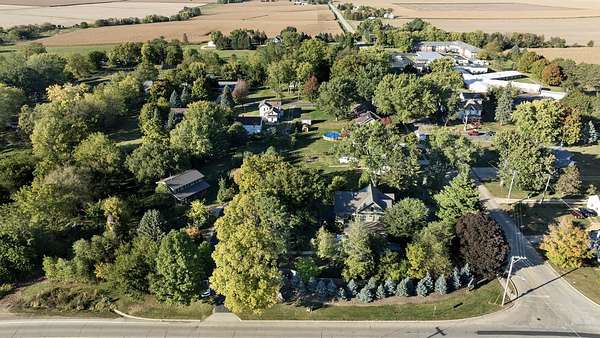 Welcome to Lincoln Way Stay, this property is a completely private, all inclusive accommodation designed to make you feel transported to a world of luxury. Following eight and half fabulous years of welcoming countless guests, brides and grooms, and gatherings of all shapes and sizes, the property is presently utilized as a short term guest lodging. The main house spans 10,000 square feet across four floors and includes six bedrooms. Each floor is equipped with its own HVAC system. The main floor features a welcoming foyer, a spacious living room, an elegant dining room, a dining porch, modern kitchen featuring high capacity commercial appliances, perfect for preparing and serving meals for large groups, and a powder room. On the second floor, you'll find three bedrooms with private bathrooms, including a master suite with French doors opening to a small deck. This floor also houses a laundry room with two washers and dryers, sink, and storage space. The third floor offers two bedrooms with a shared living room and bathroom, each bedroom featuring its own vanity. The stone cellar is a standout, with a bathroom, shower, custom-built Finlandia sauna, bedroom, studio kitchen, living room, workout room, storage, and a tornado bunker with an escape window. The property also includes an original barn used for lawn storage with two garage doors and a historic well house, both dating back to the late 1800s. The carriage house, approximately 2,300 square feet, features a second story retreat with a full kitchen, living room, laundry room, powder room, and a king suite that includes an en suite bathroom with a shower and jacuzzi tub. French doors open to a private deck from both the suite and the main area, with five car parking below. The 3,200 square foot cottage offers a full kitchen and dining room with an open floor plan, leading to a small foyer and full bathroom. The second floor includes a master king bedroom with a catwalk leading to an open air office and sitting room. The lower level comprises a living room, laundry, bathroom with shower, bedroom, and a cement tornado bunker with garden style windows for emergency exits. The property's enchanting outdoor features include a fireside pagoda, water garden, and yoga lawn, surrounded by native plants and tropicals in warm months, apple trees, and herbs. Relax by the fountain, flowing creek, and koi fish waterfall beside the yoga lawn, and discover cozy spots to rest and renew in this quiet Midwestern community. With over $3 million in renovations, this is truly a one of a kind offering.