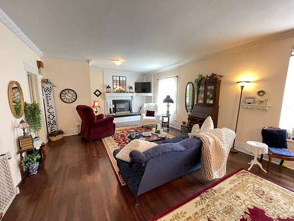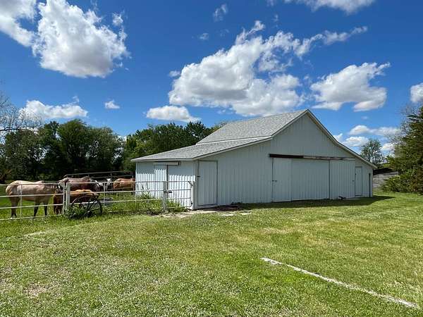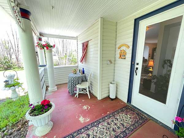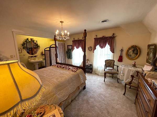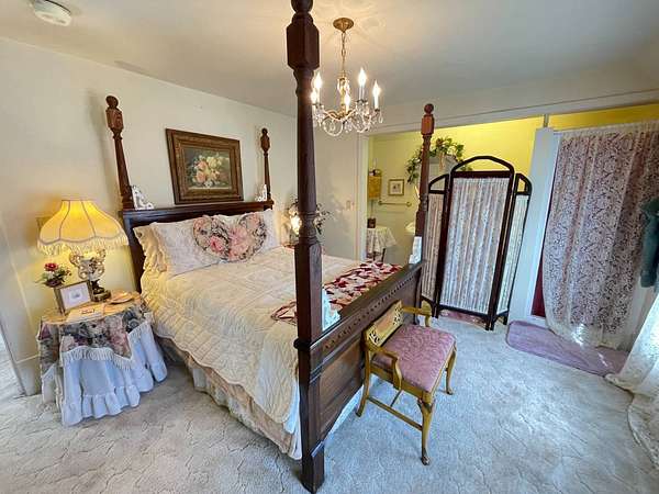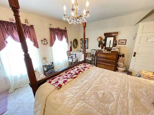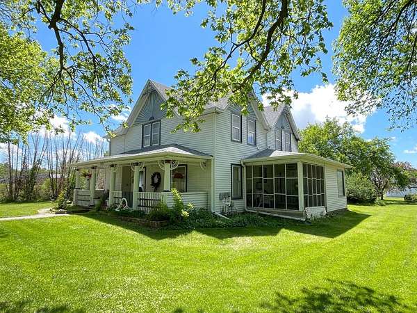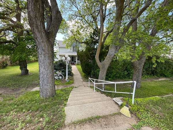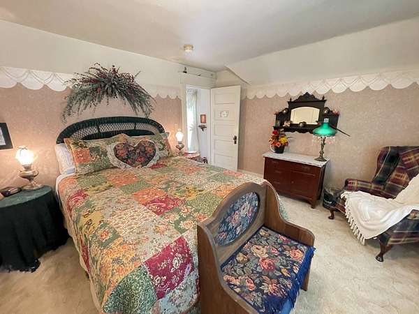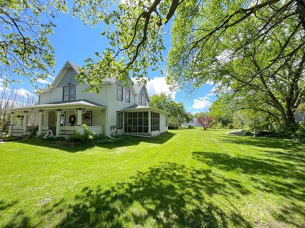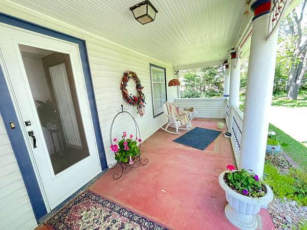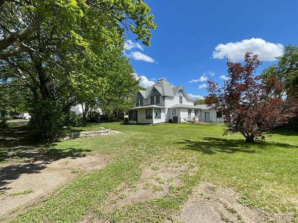 Harkening to grander days, this gorgeous 1910 Victorian home on over 5 acres will capture your heart! As you approach the home the beautiful front porch welcomes with pillars and the promise of something very special inside. Owner pride and love absolutely shine both inside and out. Natural light streams through every room of this home and your eyes are drawn to the beauty of every charming little detail. You feel the warmth of the fireplace, and the bay window full of cushions make you smile as you take in the beautiful open floor plan dining/living room. The thoughtfully designed kitchen offers custom cupboards with lots of little extras and a perfect breakfast area that opens onto an enclosed back patio. A large back porch greats you as you enter from the attached 2 car garage or the backyard. And a half bath is conveniently located just off the entry. The main floor offers an ensuite bedroom with full bath. On the 2nd floor, 4 beautiful bedrooms are located off of a large central hall with a darling seating area, as well as a full bathroom. 2 of the bedrooms offer bathroom-ettes. The home has a nice unfinished basement for storage and utilities, as well as a separate storm shelter. The home is situated on an expansive yard with wandering trails, and a separate well for all of your watering needs. Heading out back you have over 5 acres of land with Bone Creek trickling through, offering the perfect place to roam, keep some animals, and even play in the creek! There is also a separate single car garage, a barn building, and a shelter building! This home was formerly a bed & breakfast and is a perfect place to live your dreams. Come take a look and see if this gorgeous place captures as much of your heart as it did mine!