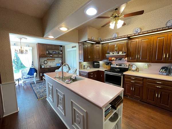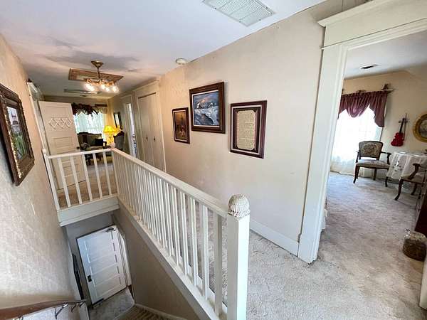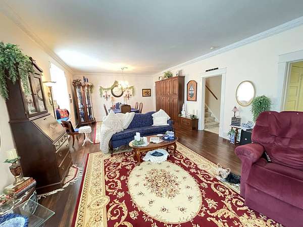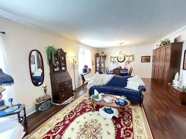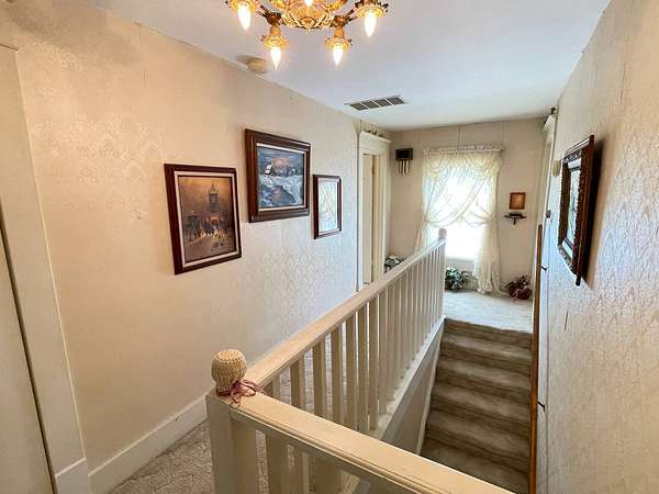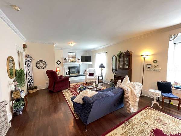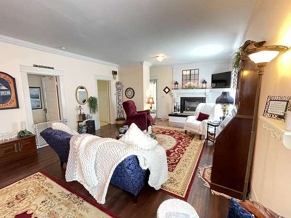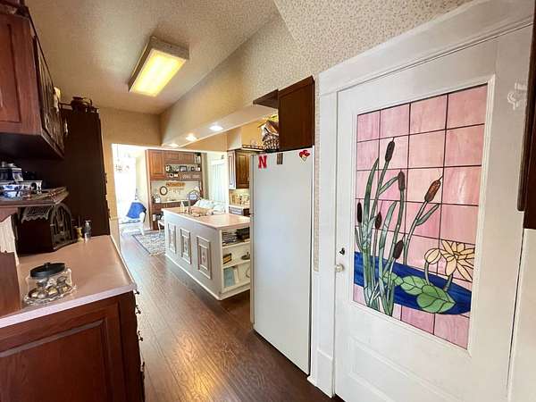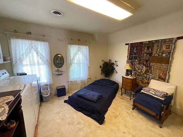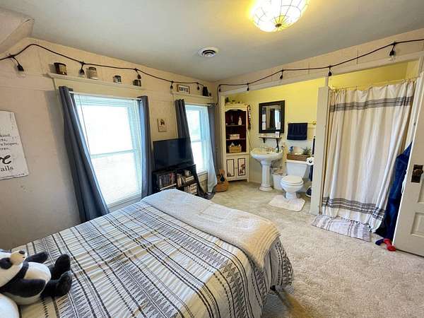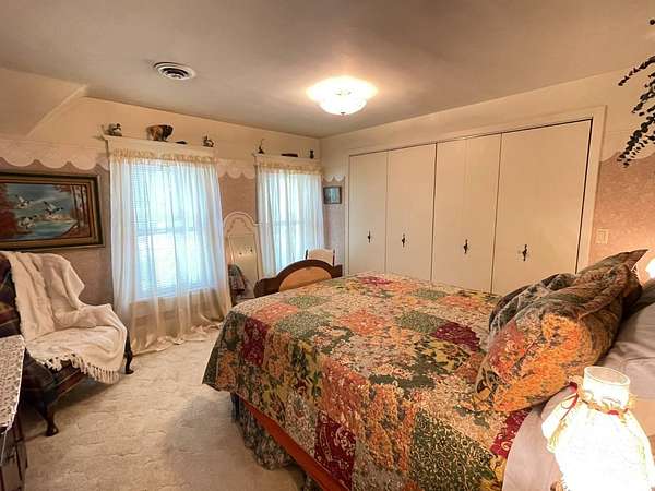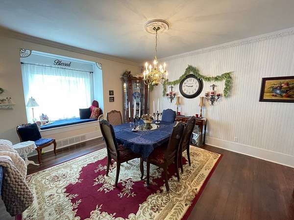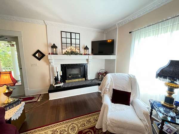 Harkening to grander days, this gorgeous 1910 Victorian home on over 5 acres will capture your heart! As you approach the home the beautiful front porch welcomes with pillars and the promise of something very special inside. Owner pride and love absolutely shine both inside and out. Natural light streams through every room of this home and your eyes are drawn to the beauty of every charming little detail. You feel the warmth of the fireplace, and the bay window full of cushions make you smile as you take in the beautiful open floor plan dining/living room. The thoughtfully designed kitchen offers custom cupboards with lots of little extras and a perfect breakfast area that opens onto an enclosed back patio. A large back porch greats you as you enter from the attached 2 car garage or the backyard. And a half bath is conveniently located just off the entry. The main floor offers an ensuite bedroom with full bath. On the 2nd floor, 4 beautiful bedrooms are located off of a large central hall with a darling seating area, as well as a full bathroom. 2 of the bedrooms offer bathroom-ettes. The home has a nice unfinished basement for storage and utilities, as well as a separate storm shelter. The home is situated on an expansive yard with wandering trails, and a separate well for all of your watering needs. Heading out back you have over 5 acres of land with Bone Creek trickling through, offering the perfect place to roam, keep some animals, and even play in the creek! There is also a separate single car garage, a barn building, and a shelter building! This home was formerly a bed & breakfast and is a perfect place to live your dreams. Come take a look and see if this gorgeous place captures as much of your heart as it did mine!