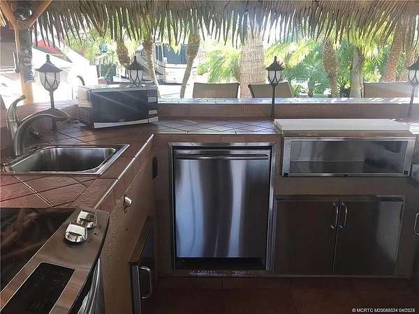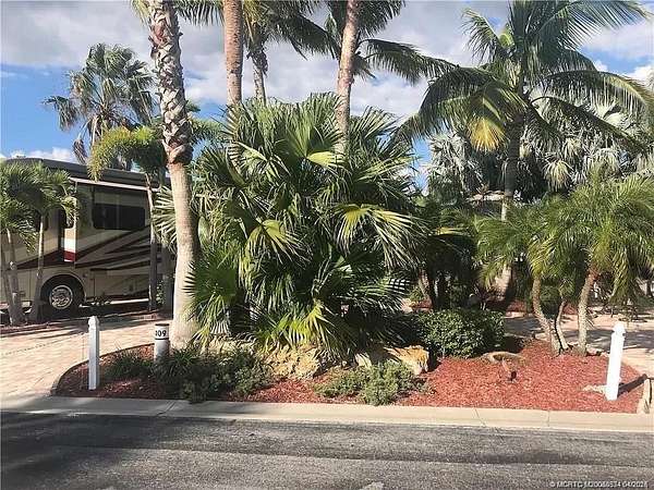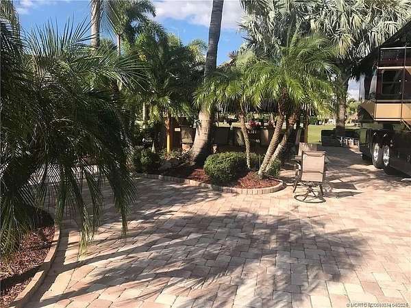 Nestled in the prestigious "millionaires row," this magnificent 3724 square foot golf course lot is a sanctuary of luxury and comfort. Meticulously designed and flawlessly maintained, every detail of this property exudes sophistication. Step into a world of refined elegance with two steel, indestructible tikis adorning the expansive grounds. The thoughtfully equipped kitchen boasts a full range, refrigerator, dishwasher, grill, and a convenient built-in cutting board, ensuring culinary excellence with every meal. Entertain in style with ample seating provided by a large dining table set, bar stools and a charming bistro set, creating inviting spaces for socializing and relaxation. Say goodbye to pesky insects with the built-in mosquito suppression system. Enhancing the curb appeal of this lot is the striking turn around driveway. For those seeking the epitome of luxury living, this lot presents an unparalleled opportunity to park your coach and indulge in a lifestyle of leisure.