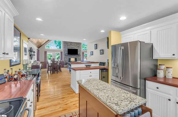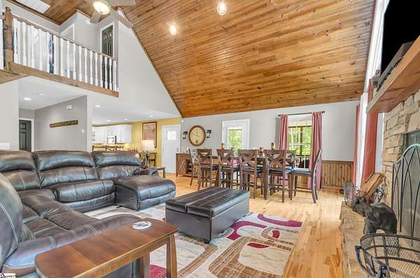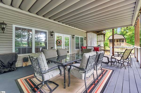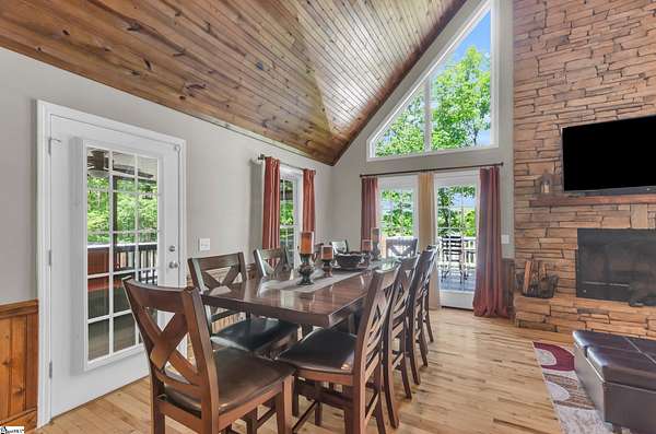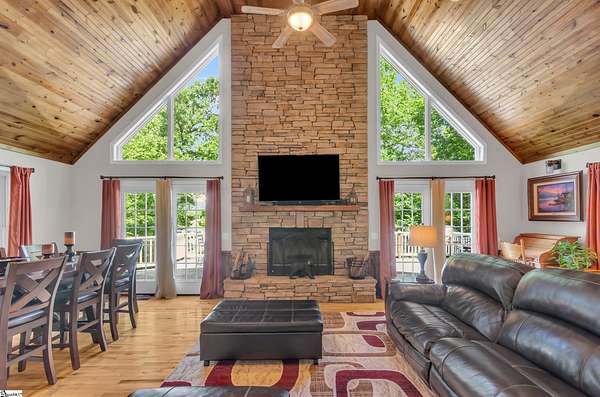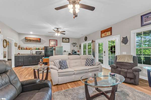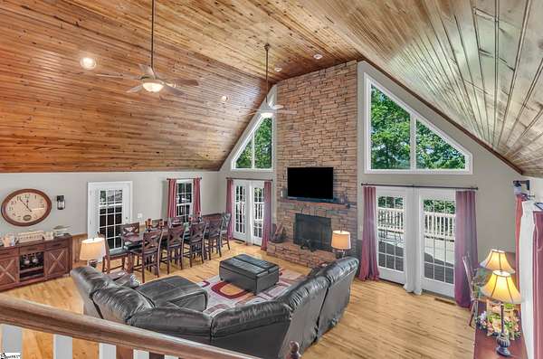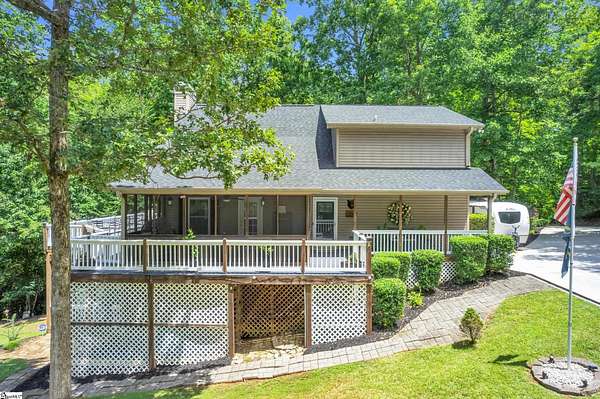 Welcome to 409 The Bear Blvd -- a private lakefront retreat tucked inside Fiddler's Cove, a peaceful community in Tamassee, SC. With two adjoining lots totaling 1.71 acres, this property offers both privacy and flexibility, whether you're dreaming of a full-time residence, a weekend escape, or a multigenerational gathering place. Step inside this spacious 5-bedroom, 3-bath home designed for both comfort and connection. The main level welcomes you with warm rustic details and abundant natural light, while the fully finished walkout basement provides a second living space with two bedrooms, a family/rec room, wet bar, and covered deck that opens right out to the water. It's the perfect setup for entertaining, hosting, or simply enjoying quiet moments by the lake. Outdoor living is at the heart of this home. Imagine sipping coffee on the screened-in front porch, gathering for dinner on the freshly painted back deck, or spending long afternoons down by the water. With two private docks, a lakeside gazebo, and wooded trails to explore, every day feels like a retreat. The property also features a permitted accessory building with its own porch, mini-split heating and cooling, insulation, and full electrical--currently used as a creative studio, but easily adaptable into a workshop, office, or future guest suite. Surrounded by the natural beauty of Oconee County, you'll have easy access to hiking trails, mountain views, and the charm of small-town living. Whether you're unwinding for the weekend or planting roots for good, 409 The Bear Blvd offers a lifestyle that blends tranquility, recreation, and the joy of true lakefront living. Buyer to verify all information deemed important in purchase.