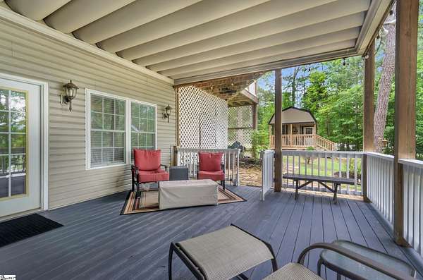 Welcome to 409 The Bear Blvd -- a private lakefront retreat tucked inside Fiddler's Cove, a peaceful community in Tamassee, SC. With two adjoining lots totaling 1.71 acres, this property offers both privacy and flexibility, whether you're dreaming of a full-time residence, a weekend escape, or a multigenerational gathering place. Step inside this spacious 5-bedroom, 3-bath home designed for both comfort and connection. The main level welcomes you with warm rustic details and abundant natural light, while the fully finished walkout basement provides a second living space with two bedrooms, a family/rec room, wet bar, and covered deck that opens right out to the water. It's the perfect setup for entertaining, hosting, or simply enjoying quiet moments by the lake. Outdoor living is at the heart of this home. Imagine sipping coffee on the screened-in front porch, gathering for dinner on the freshly painted back deck, or spending long afternoons down by the water. With two private docks, a lakeside gazebo, and wooded trails to explore, every day feels like a retreat. The property also features a permitted accessory building with its own porch, mini-split heating and cooling, insulation, and full electrical--currently used as a creative studio, but easily adaptable into a workshop, office, or future guest suite. Surrounded by the natural beauty of Oconee County, you'll have easy access to hiking trails, mountain views, and the charm of small-town living. Whether you're unwinding for the weekend or planting roots for good, 409 The Bear Blvd offers a lifestyle that blends tranquility, recreation, and the joy of true lakefront living. Buyer to verify all information deemed important in purchase.