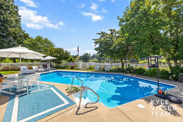 Meticulously maintained Echo Lake estate. This thoughtfully designed 4BD, 2.5BA home sits on 3.2 acres, surrounded on nearly all sides by Echo Lake and a peaceful creek-creating your own private oasis. Original owners since 1977. Enjoy the expansive pool area with charming picket fence decor, a screened-in patio, gazebo, lush landscaping with hydrangeas, and a brand-new hydrotherapy hot tub (2025). Inside: a chef's kitchen with integrated appliances, cozy fireplaces, built-in bookshelves, window seats, and lake-facing shuttered windows. The spacious primary bedroom upstairs features direct access to private balcony for lake views. Updated garage door opener. A beautiful retreat just minutes to I-96, Downtown Grand Rapids and Ada, and Forest Hills schools.