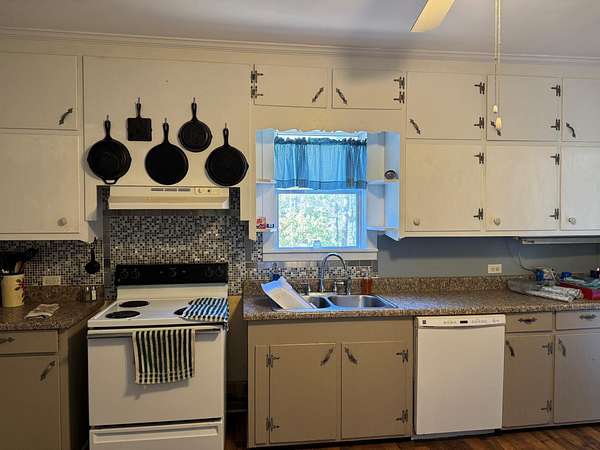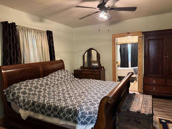 Welcome to country living in an updated farmhouse. This well-kept home has all the charm and character of the 1920's but has been updated for today. The electrical & plumbing have been updated, both bathrooms have been updated. The main bedroom features a new ensuite bath with a freestanding tub and separate walk-in shower. All of the rooms are large with tall ceilings. Both bedrooms include a very nice electric fireplace & ceiling fans. The large kitchen is loaded with cabinets and as an added bonus includes a unique coffee bar, an antique stove. Improvements include newer tilt out insulated windows. Property includes the barn. All of this located on 2.44 acres. Furnishings in the house are negotiable.