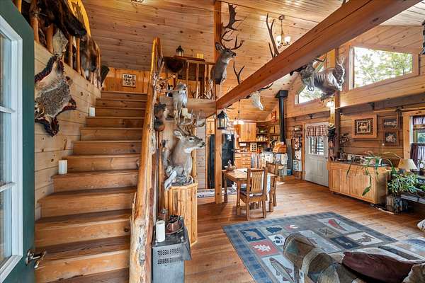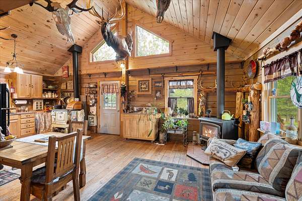 Motivated Seller!! Dream Mini Farm on 20 Secluded Acres with Mountain Views! This Montana gem featuring a log cabin is a turnkey off-grid dream for homesteaders, hobby farmers, or those seeking a peaceful rural lifestyle. The property features a 40'x50' pole barn with 12' sliding doors, two matted box stalls, tool area with workbench, and enclosed cutting room complete with hanging rail and cutting bench. Additional outbuildings include a log guest cabin, 15x30' hay storage barn with 10' matted box stall, garden shed, and several others. Animal enthusiasts will appreciate the round pen, horse paddock with shelter, pig pens, small livestock pens and multiple fenced dog pens. Enjoy privacy and panoramic mountain views while living sustainably thanks to large fenced gardens, an upgraded solar system, new gas kitchen stove, and newer Blaze King wood stove with double-wall pipe for cozy winters. A rare find that blends functionality, seclusion, and beauty-ready for your off-grid lifestyle!