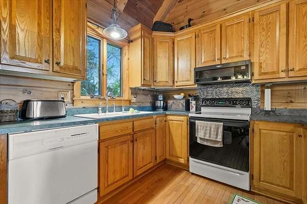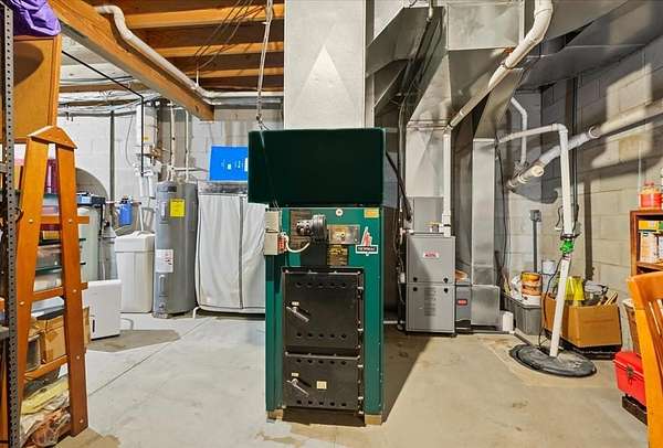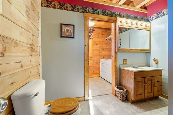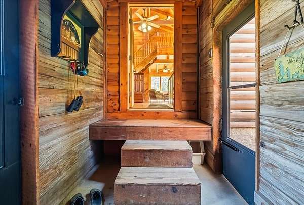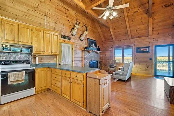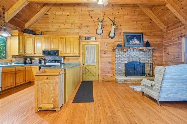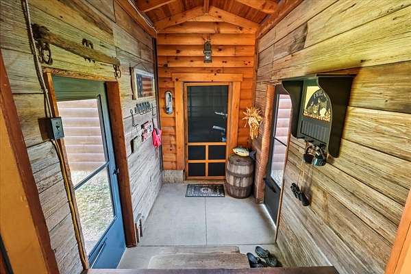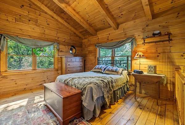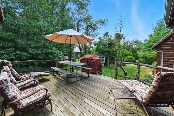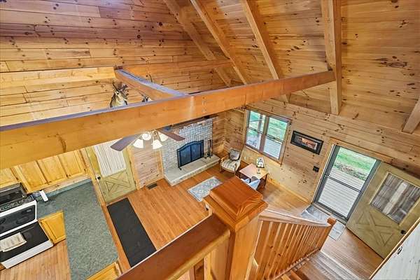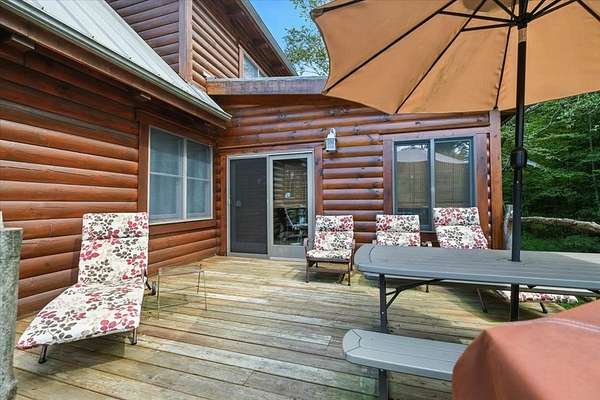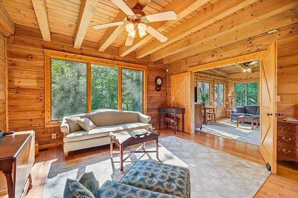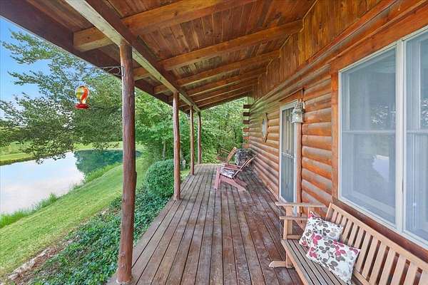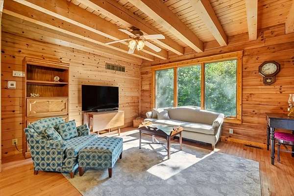 Surrounded by 17.478 acres of woods, water, and open land, this 2001 log cabin feels like a place set apart. A quiet pond reflects the sky, while stands of mature trees and rolling ground frame the setting in every direction. Inside, natural wood and vaulted ceilings create an airy yet warm living space. A loft bedroom overlooks the great room, with two full baths and a lower-level rec room extending the home's versatility. Comfort comes easy with flexible heating options, including forced-air wood burner, forced-air electric, and forced-air propane systems. A 2-car attached garage pairs with a pole barn offering three additional bays, blending rustic character with practical function. With its mix of land, water, and timeless cabin style, this property carries a rare sense of retreat--a place where the landscape and the home feel seamlessly connected.