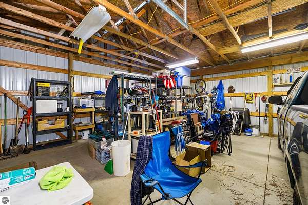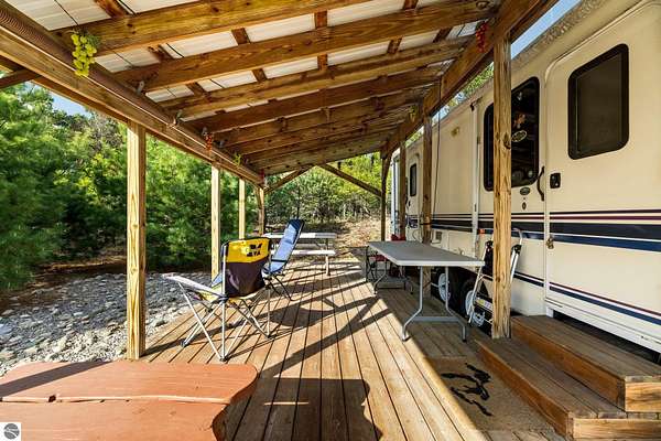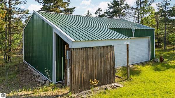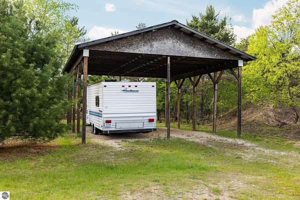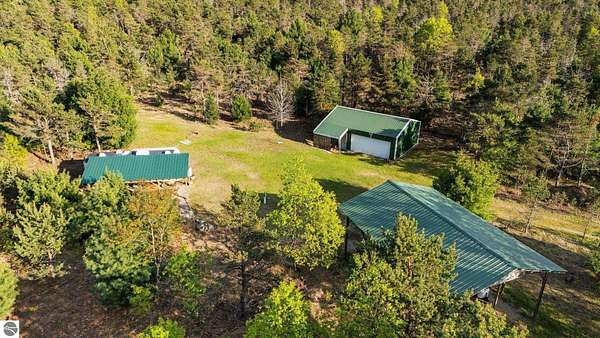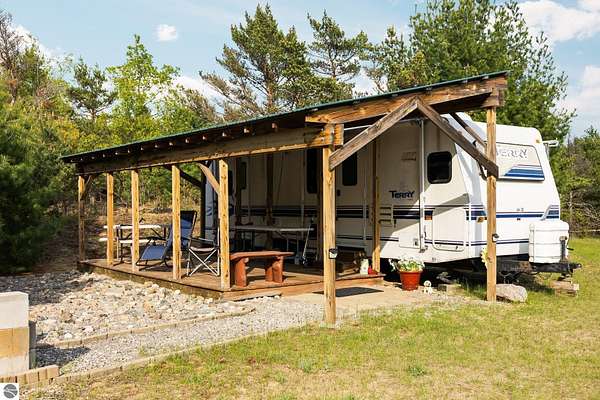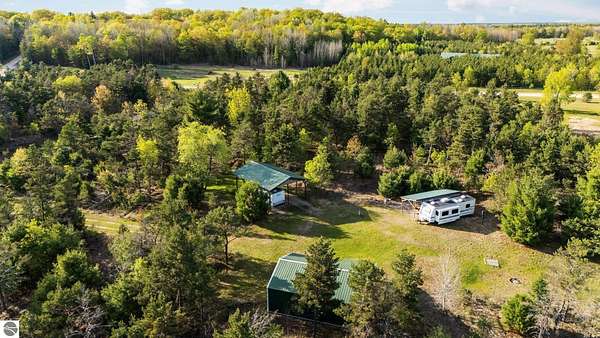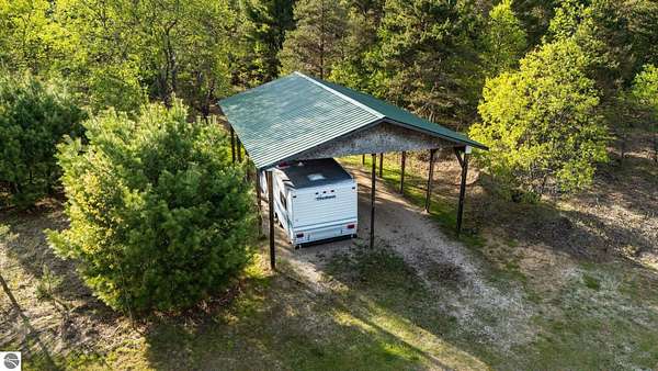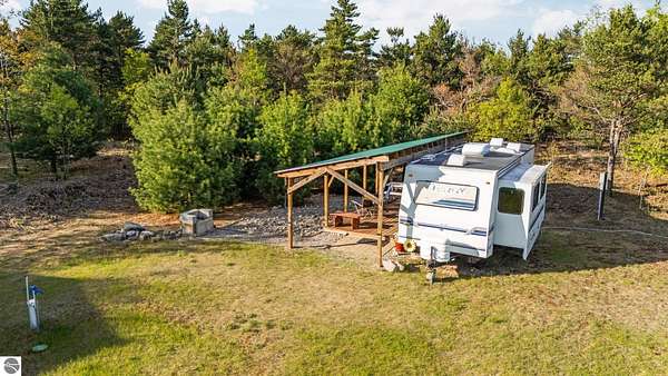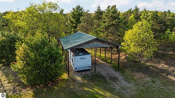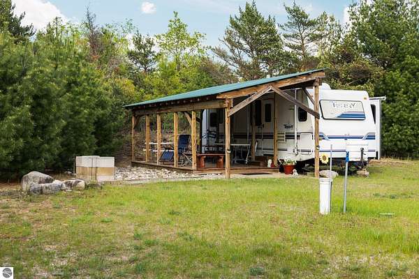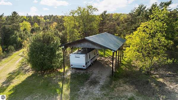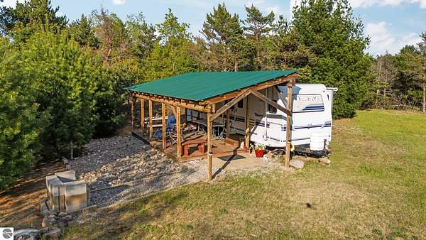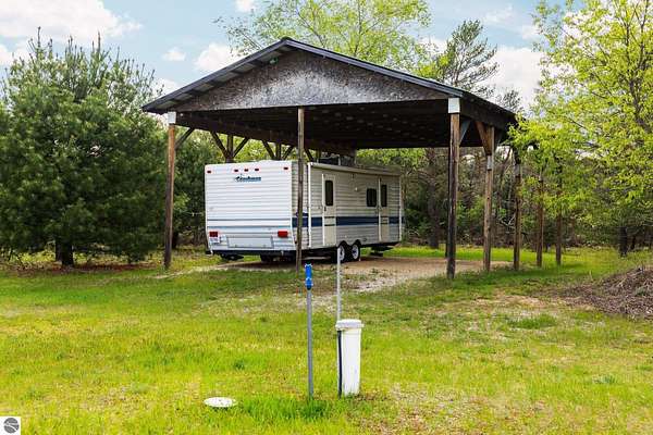 Beautiful 5.3-Acre Improved Property - Camper Ready with Utilities and Outbuildings! Don't miss this incredible opportunity to own a fully improved 5.3-acre parcel in the heart of Kalkaska County, conveniently located between Kalkaska and South Boardman. This scenic and private piece of land is ready for your enjoyment and offers everything you need for a perfect up-north getaway, recreational retreat, or future homesite. The property comes fully equipped with electric, a private well, and a septic field already installed--just pull in and plug in your camper! A spacious 34' x 24' pole barn with a concrete floor, full electric, metal roof, and siding provides excellent space for storing equipment, toys, or converting into a workshop. In addition, there's a 32' x 24' metal roof-over with a gravel pad, capable of sheltering two campers side by side. Enjoy the outdoors from the 10' x 28' covered porch with a durable metal roof, designed so you can pull your camper right up next to it--perfect for relaxing in the shade or entertaining guests. The land itself is partially cleared with a balance of wooded privacy and open space, ideal for outdoor activities or future development. This property offers the perfect blend of comfort, convenience, and natural beauty. Whether you're looking for a place to escape on weekends, set up a hunting basecamp, or build your dream home, this parcel is ready to go with all the essential infrastructure already in place.