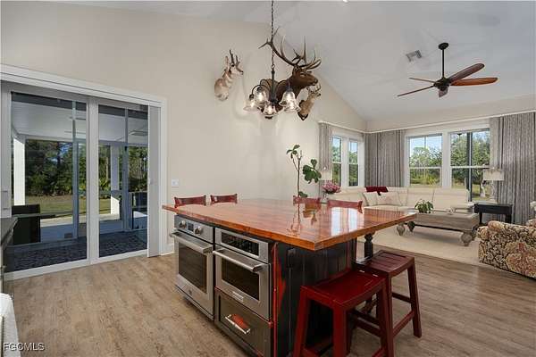 Welcome to 4093 Sunshine Boulevard, a truly exceptional custom-designed and built home by Stearns Custom Builders in 2016, offering the quality, craftsmanship, and thoughtful design of a new custom build-without the wait. Built to code and carefully constructed with longevity in mind, this home has remained high and dry with no hurricane damage, providing peace of mind and long-term confidence. Situated on 5 beautiful acres, this property delivers the perfect blend of privacy, functionality, and the relaxed Pine Island lifestyle. Designed for both everyday living and entertaining, the home is complemented by a detached red iron steel barn, ideal for storing boats, RVs, equipment, or all of your favorite toys. Inside, the home showcases distinctive custom finishes and high-end upgrades that set it apart. The kitchen is a true centerpiece, featuring a barnwood kitchen island, reclaimed wood countertops, and commercial-grade, high-end appliances, including a Wolf range and a second oven-perfect for hosting, holidays, or the passionate home chef. A whole-home generator with 400 gallon propane tank adds an additional layer of comfort and security, ensuring seamless living year-round. Adding even more versatility is a charming She-Shed with a mini kitchen (some items do not convey), ideal for a home business, creative studio, guest retreat, or private escape. Enjoy the freedom and possibilities that come with five acres of land, offering room to roam, expand, or simply enjoy the peaceful surroundings. Located just minutes from multiple boat ramps, this home is perfectly positioned for those who love life on the water. Pine Island is a renowned fishing community, offering easy access to both inshore and offshore fishing and some of Southwest Florida's most pristine waterways. If you're searching for a one-of-a-kind custom home, premium craftsmanship, space for your lifestyle, and quick access to boating and fishing-all in a laid-back island setting-4093 Sunshine Boulevard is a rare opportunity you won't want to miss.