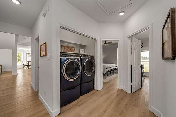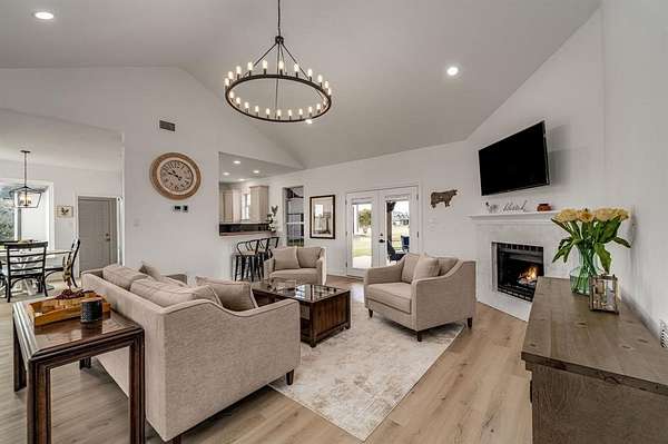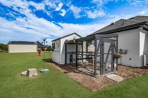 Ask about the 15K credit! Elevated on 3 scenic acres in the desirable North Preston Lakes Estates community, this property offers peaceful country living with sweeping 360? views. Horses and donkeys are welcome, making it ideal for those seeking space for animals. Alongside the beautifully refreshed home, the property includes a 1,200 sq. ft. barn with water and bath hookups. The property also comes with a dedicated chicken coop, ideal for hobby farming or extra storage. Recent upgrades bring both comfort and efficiency: a 5-ton smart inverter HVAC system with dual-zone thermostats, new ducts and gas lines, a new roof and gutters, argon windows, smart smoke detectors, a backup garage opener, power-outage lighting, and 100% high-speed fiber internet already installed. The interior showcases fresh paint, new luxury vinyl plank flooring, and modern lighting throughout, along with all-new door levers. The kitchen features a new gas range, cooktop, and dishwasher, complemented by painted cabinets. A marbled fireplace, blackout cellular shades, and color-changing recessed lighting create a warm and inviting living area. The spacious primary suite includes an updated shower and enclosure, a jetted garden tub, and split vanities, while four secondary bedrooms provide ample space on the main level. A formal dining room and a private upstairs office provide flexible living and entertaining options. Step outside to enjoy the newly landscaped grounds with fresh mulch and drip irrigation. Just minutes from Celina's top-rated schools and downtown, with quick access to future highway expansions, this property combines the tranquility of the country with everyday convenience.