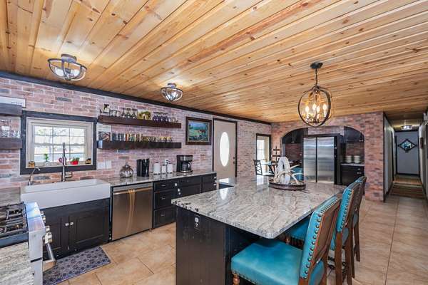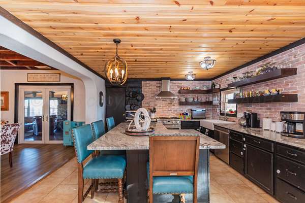 Welcome to your dream country estate- this beautifully reimagined 4 bed/4bath home combines modern style with authentic ranch character sitting on 48.84 stunning acres of wide-open Texas land. This property blends luxury living with true ranch functionality. Step inside to find an open, light-filled interior featuring soaring ceilings & a striking rock fireplace stretching all the way to the ceiling, creating a warm & inviting centerpiece for the home. The thoughtful floor plan includes two versatile offices perfect for work, hobbies or guest use & a large climate controlled sunroom that brings the outdoors in while offering panoramic views of the property. Property includes a full roping arena, 8-stall barn with runs, a tack room, & two oversized storage buildings providing ample (cont) space for equipment & livestock needs. The new covered back porch &privacy fence create an inviting outdoor space for gatherings or quiet evenings overlooking the pond which adds a peaceful touch to this beautiful landscape. Every element of this home has been renewed & refined from the interior finishes to the functional upgrades throughout, blending elegance, comfort and western charm. Whether you're looking to run livestock, entertain family, or simply enjoy the open sky, this property is perfect for those seeking wide-open space with modern amenities and a turnkey ranch lifestyle.