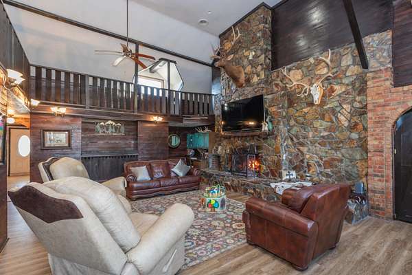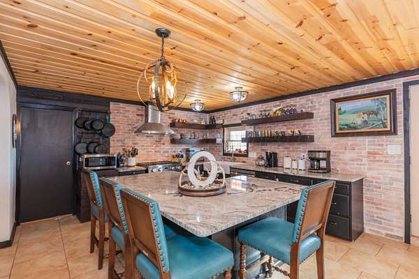 SELLER WILL CONSIDER OWNER FINANCING! Welcome to your dream country estate- this beautifully reimagined 4 bed/4bath home combines modern style with authentic ranch character sitting on 48.84 stunning acres of wide-open Texas land. This property blends luxury living with true ranch functionality. Step inside to find an open, light-filled interior featuring soaring ceilings & a striking rock fireplace stretching all the way to the ceiling, creating a warm & inviting centerpiece for the home. The thoughtful floor plan includes two versatile offices perfect for work, hobbies or guest use & a large climate controlled sunroom that brings the outdoors in while offering panoramic views of the property. Property includes a full roping arena, 8-stall barn with runs, a tack room, (cont)