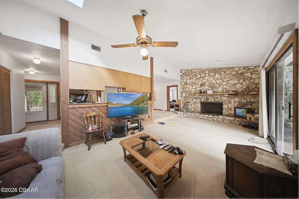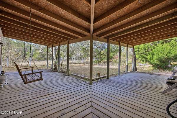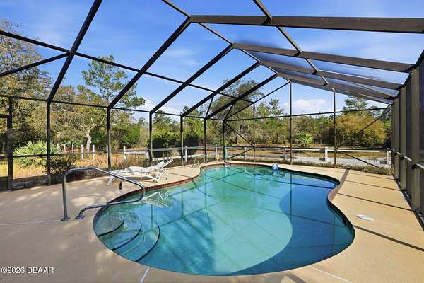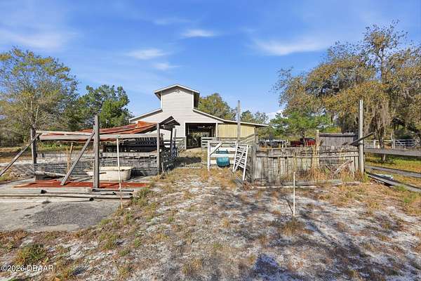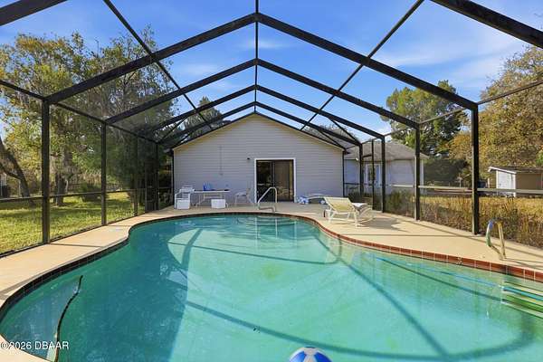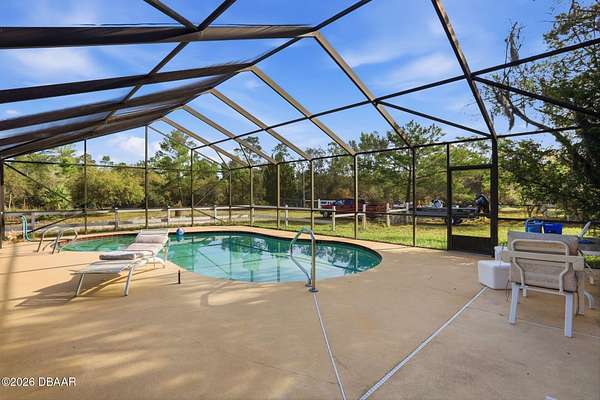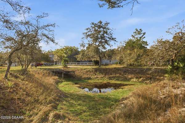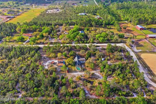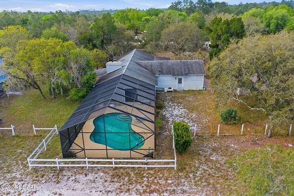 Welcome to your own slice of peaceful paradise at 4095 Pioneer Way in beautiful New Smyrna Beach. Nestled on over 5 acres of fully fenced land, this charming 3-bedroom, 3-bath home offers the perfect balance of privacy, functionality, and natural beauty. Surrounded by mature trees and open pasture, this property is a dream for horse enthusiasts and animal lovers, featuring six horse paddocks and ample space for additional livestock, recreation, or expansion. Whether you're enjoying your morning coffee or unwinding at sunset, you'll love watching deer and wild turkey roam freely across your land, creating a truly serene, nature-filled setting. Inside, the home exudes warmth and character with a beautiful rock-wall fireplace as the centerpiece of the living space, complemented by recessed lighting that enhances the inviting atmosphere. The thoughtfully designed layout offers comfortable living with approximately 1,768 sq ft, perfect for both everyday living and entertaining. Step outside to enjoy a variety of outdoor features, including a patio, porch, and pool area, ideal for relaxing or hosting gatherings in your private backyard oasis. A storage building and generous acreage provide flexibility for hobbies, equipment, or future improvements. Located in a quiet, rural setting yet just minutes from town, this property offers the best of both worlds--peaceful country living with convenient access to shopping, dining, and top-rated schools. It's the perfect place to raise a family, enjoy wide-open spaces, and embrace the Florida lifestyle.
