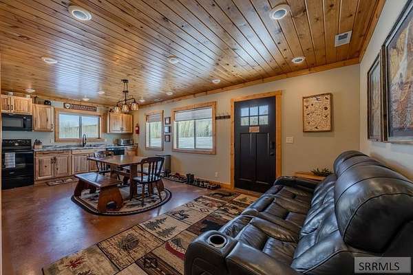 Embrace mountain serenity at this rustic Island Park retreat, thoughtfully designed with two fully separate living quarters-ideal for multi-generational living, guests, or future rental potential. The main cabin features 2 bedrooms and 2.5 baths, while the secondary cabin offers 2 bedrooms and 1.5 baths, allowing flexibility to live in one space while using the other for guests or potential income. Each living area includes its own kitchen, or both can be combined for larger gatherings where everyone enjoys their own personal space. Set on 3.66 acres, this well-built property offers room to expand, with the ability to add an additional structure. Build a shop for recreational toys or a horse barn-a rare opportunity in Island Park, as this area welcomes horses. With 2,759 square feet of combined living space, the cabins feature rustic slab flooring, vaulted ceilings, durable finishes, and a layout well-suited for mountain living. Enjoy beautiful mountain views from nearly every window, along with front and rear covered porches that invite the outdoors in complete with a new hot tub. An attached two-car garage provides year-round convenience during winter months. Advance appointments required for showings. Call the listing agent today to schedule to view this amazing property.