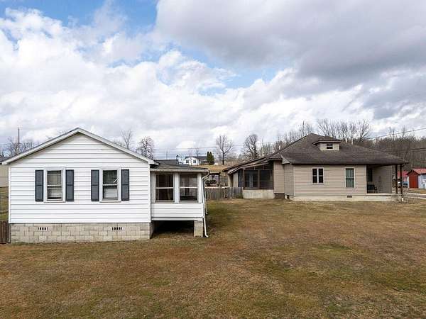 Originally built in 1914, this farmhouse has been thoughtfully expanded, renovated and improved through the generations, blending historic character with modern functionality. Offering approximately 2,860 square feet, the home features 5 bedrooms and 3 full bathrooms, including 2 bedrooms and 1 bath in the finished attic ready for your personal finishing touches. Inside you'll find a spacious living room, large kitchen, formal dining room and a versatile bonus room just before the kitchen, perfect for an office, playroom or additional sitting area. Original pocket doors remain between the dining and living rooms and are operational with minor flooring modification. A mudroom leads to the utility room and attached 2-car garage for everyday convenience. The primary suite is a private retreat with its own enclosed patio that flows into a screened-in porch. Outdoor living is abundant with covered front and rear porches plus an additional covered back patio. Major updates include a roof approximately 12 years old and an HVAC system approximately 5 years old. Situated on 2.75 unrestricted acres with no deed restrictions or zoning requirements, the property also includes a 24x36 pole-building shop with tall ceilings and concrete floor, a 15x30 dog kennel, 10x20 wood shed/mini barn and a separate 900 sq ft 1-bedroom, 1-bath cottage ready for restoration. Ideally located just off US 60 between Morehead and Olive Hill, this property offers space, flexibility and endless potential.