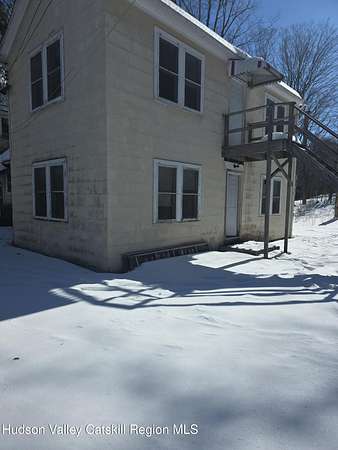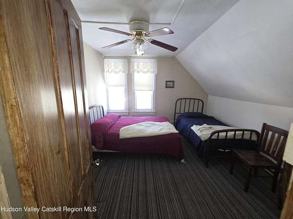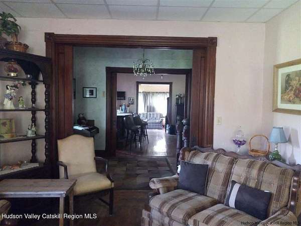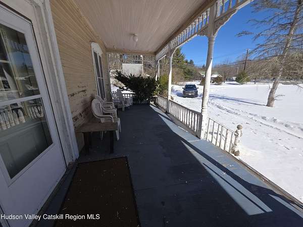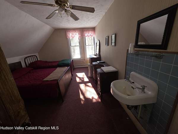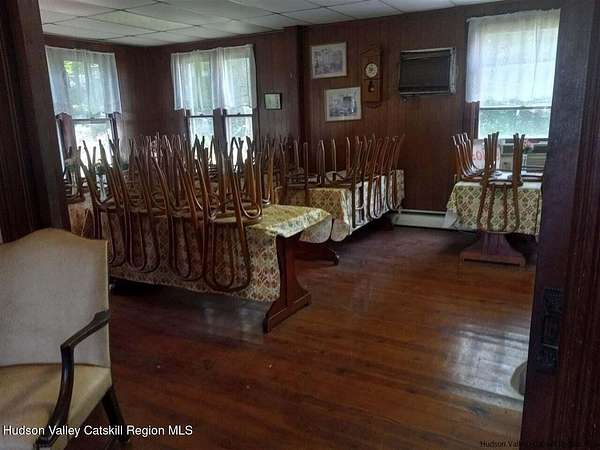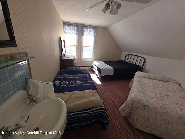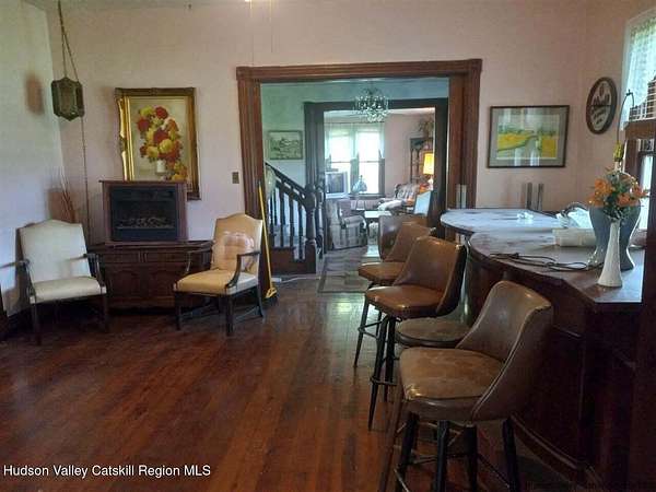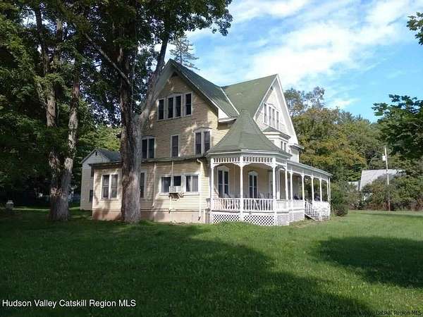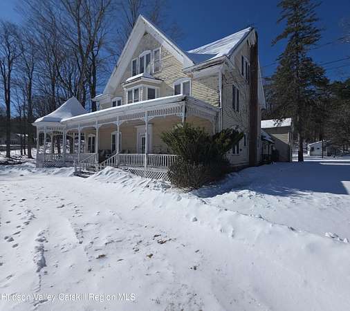 Exceptional opportunity to own a historic lodge property in the Catskills, formerly operated as the well-known Woodlands Lodge. Situated on approximately 2.4 acres in desirable Round Top, New York, this expansive property offers incredible potential for a bed & breakfast, boutique inn, wedding venue, retreat center, or private estate. The main residence features multiple levels of bedrooms and baths, showcasing original character throughout, including beautiful woodwork, pocket doors, and a grand staircase in the impressive entry foyer. The first floor offers a spacious prep kitchen with pantry and office area, bar room, double parlor, large sun-filled dining room, and an additional sitting room created from enclosed porch space. A rear staircase and separate exterior entrance provide convenient access to guest accommodations. The second floor includes five bedrooms and six bathrooms, while the third floor offers seven additional bedrooms with sinks and two full baths. A rear addition provides four more bedrooms with baths, creating substantial capacity for guests or extended living arrangements. Additional features include a laundry area and staff quarters off the kitchen. The Property is being sold As-Is and Cash offer preferred because of low asking price. The back cottage is gutted and is approximately 1024 square feet. The property is ideally located near popular ski resorts, golf courses, hiking trails, and outdoor recreation, with convenient access to the New York State Thruway, making travel from the New York City metro area easy. With vision and renovation, this property presents tremendous potential to restore it to an active hospitality destination or create a one-of-a-kind private compound. The property has been successfully subdivided, and taxes will be based on the 2.4-acre parcel. Most furnishings and contents associated with former lodge operations are included in the sale, with limited personal exclusions.