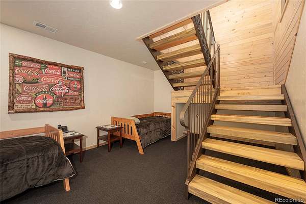 Elevated mountain living in Trail Creek Estates. This beautifully crafted 3-bedroom, 3-bath mountain retreat sits on a spacious 1.71-acre corner lot in the heart of Grand County. Thoughtfully designed, the home showcases stunning locally sourced blue beetle kill pine throughout, blending rustic character with refined comfort. Custom metal railings provide a striking modern contrast to the warm wood interiors.